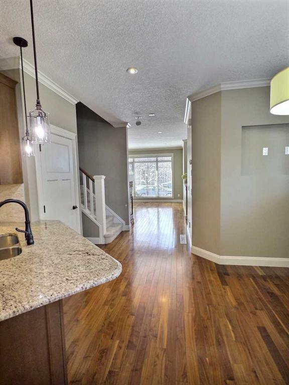 Welcome to this bright and beautiful front unit featuring 2 bedrooms, 2.5-bathrooms in this highly sought-after location. With almost 1,400 sq. ft. of well-designed living space, this property offers exceptional comfort and style. Gorgeous acrylic stucco, stone work aggregate walkways and mature trees, give this home amazing curb appeal. Both master bedrooms feature their own 4-piece ensuite bathrooms and large walk in closets, making it ideal for privacy and convenience. Enjoy the beautiful downtown skyl...