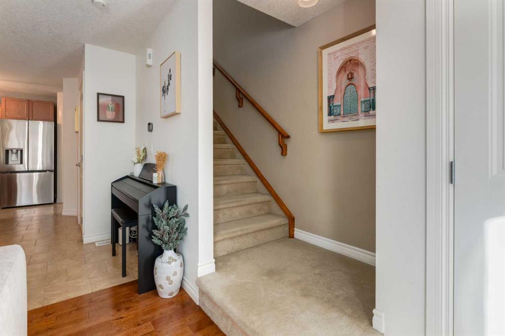 Welcome to this impeccably maintained two storey home, ideally positioned at the front of an intimate four unit complex on a gorgeous, tree lined street! From the moment you open the front door, you’re welcomed by an abundance of natural light streaming through the beautiful south facing window, creating a bright and inviting first impression. Ceramic tile transitions seamlessly into rich hardwood flooring in the living room, where a cozy corner fireplace creates a warm and inviting focal point. The kitch...