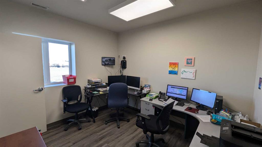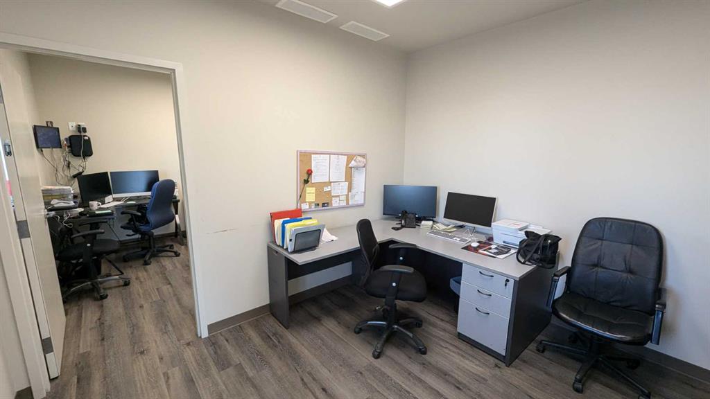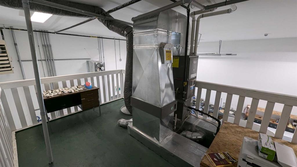 This flexible industrial condo has a lot to offer for its size. Features include a reception area and two private offices with exterior windows. There are two, 2-piece bathrooms one in the office and one in the shop space. There is also a mezzanine with storage below, as well as forced air and air conditioning for the office and unit heater for the shop. The shop offers 18’ ceilings, a drive-thru bay with two 14’ x 16’ overhead doors, trench floor drains, full-size makeup air unit, and 200 amp, 3-phase ele...