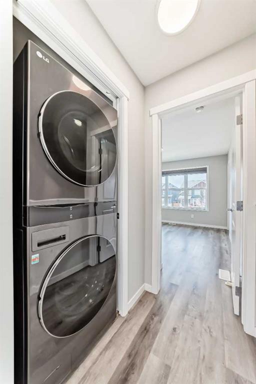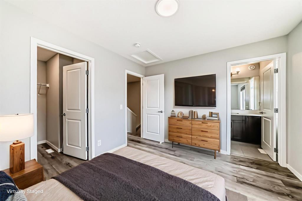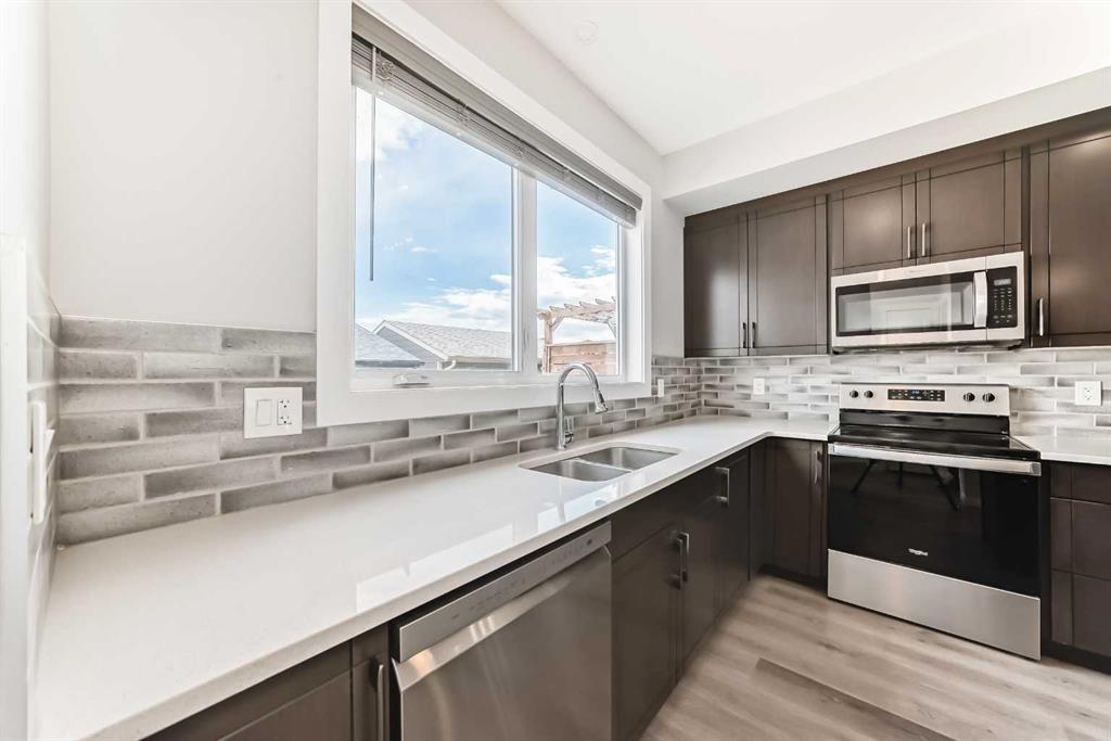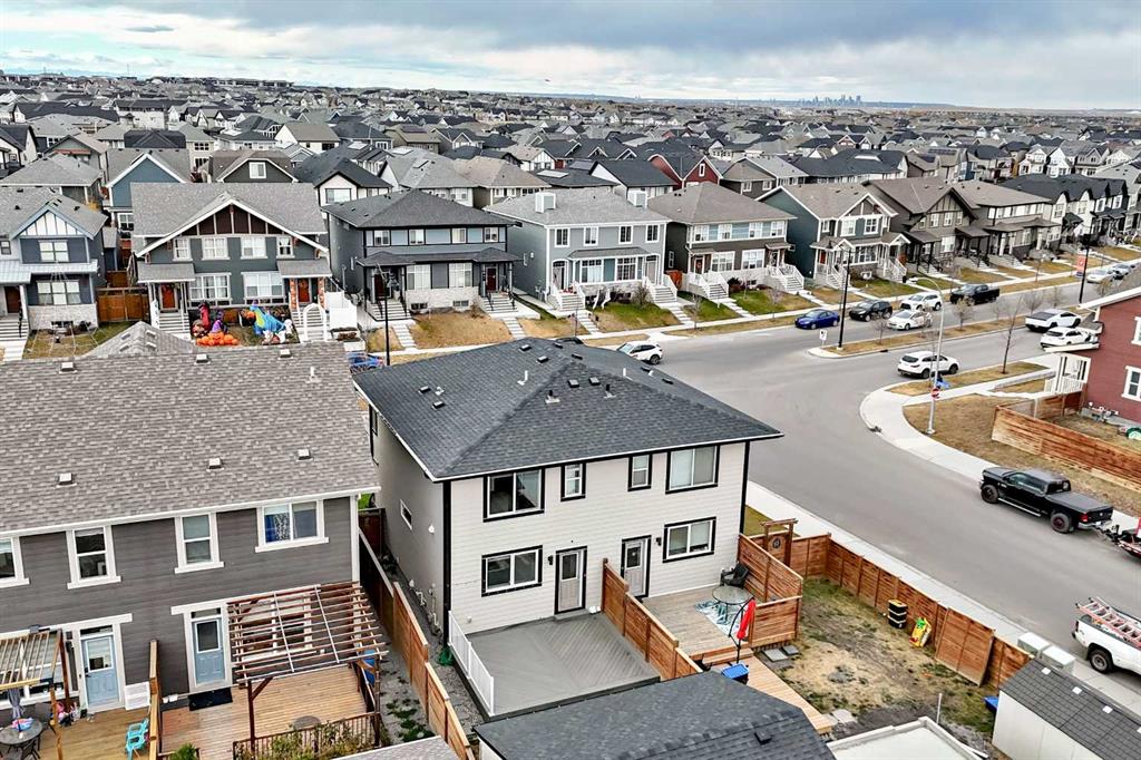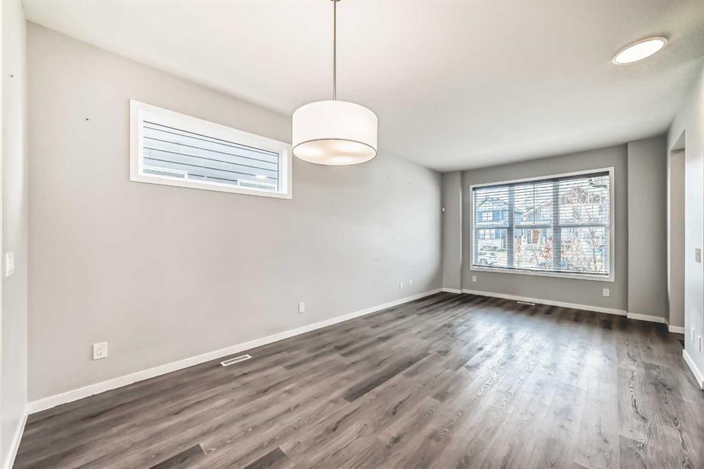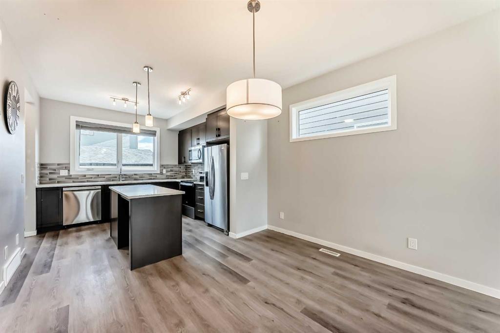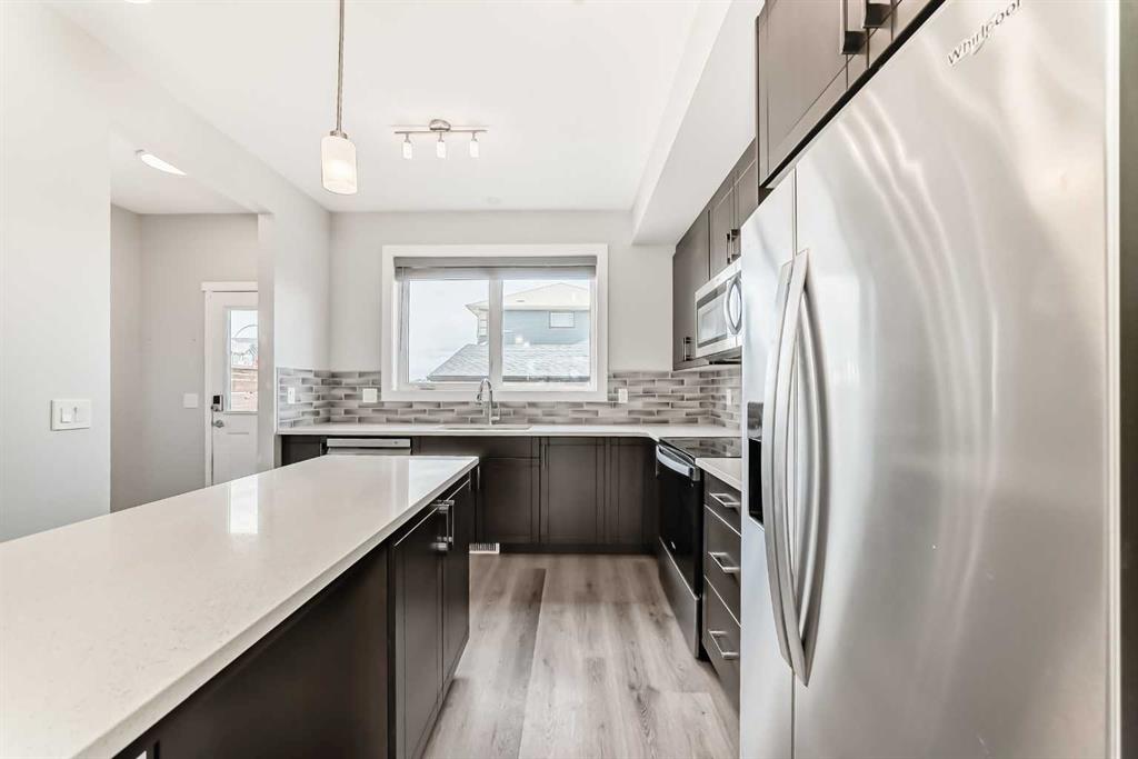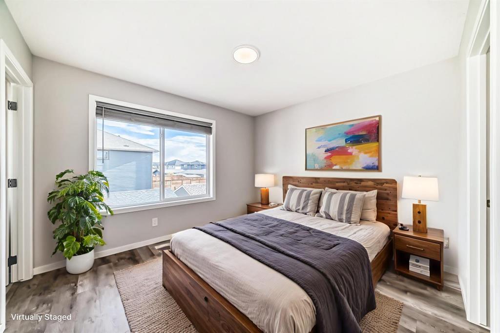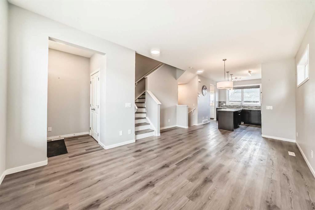 **OPEN HOUSE SAT NOV.8/25 FROM 12-2 PM** Looking for a low maintenance lifestyle, w/no condo fees in one of Calgary's hottest lake communities? Look no further! This exceptional fully landscaped 2 bed/2.5 bath semi detached home w/double detached garage is the one to see! Walking up to the home you'll appreciate the covered front porch & Hardie plank siding. Upon entering, you'll love the 9' ceilings, open concept living space, fresh paint, luxury vinyl plank flooring throughout & the large windows flooding...