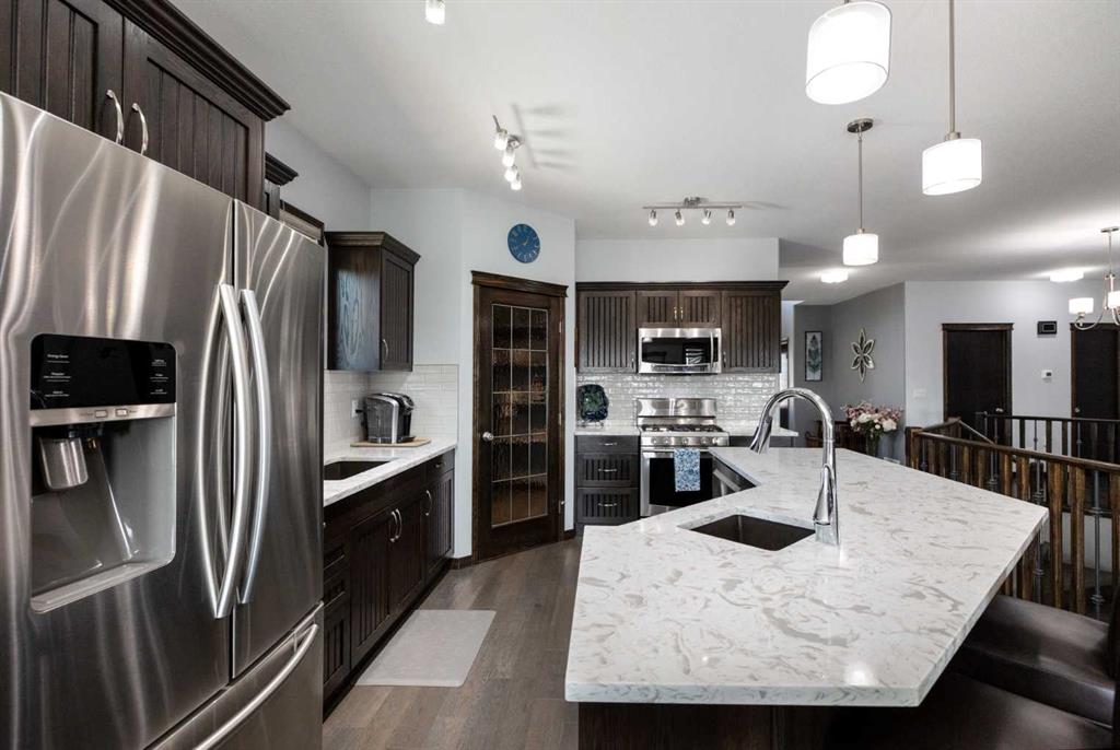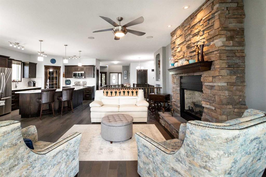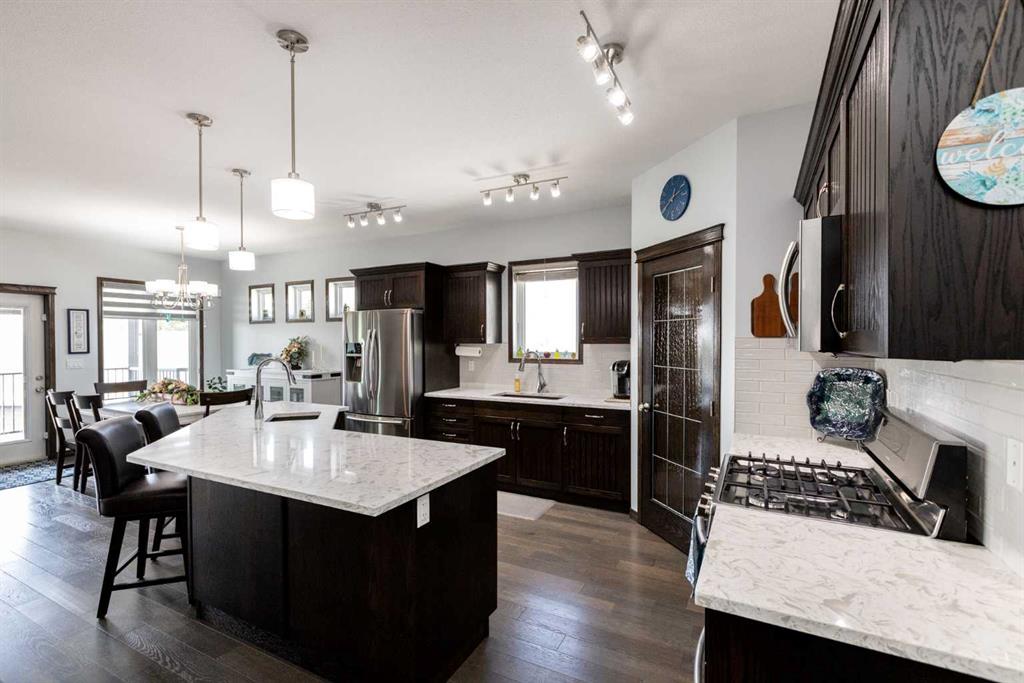 Experience luxury living at its finest in this custom-built, over 4,000 sq. ft. fully finished bungalow in Blackfalds! Designed for comfort, style, and entertaining, this home boasts no rear neighbours, breathtaking views, and both a double front attached heated garage plus a huge detached heated garage with alley access and RV parking. Inside, enjoy 9-ft ceilings, triple-pane windows, in-floor heating, and expansive natural light. The main level features a spacious kitchen with walk-in pantry, large island...