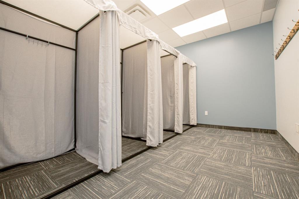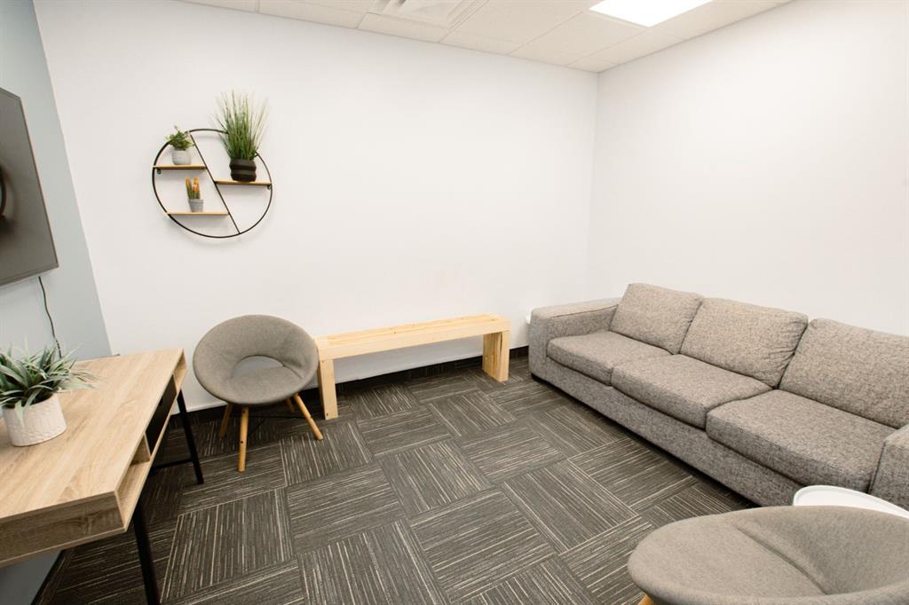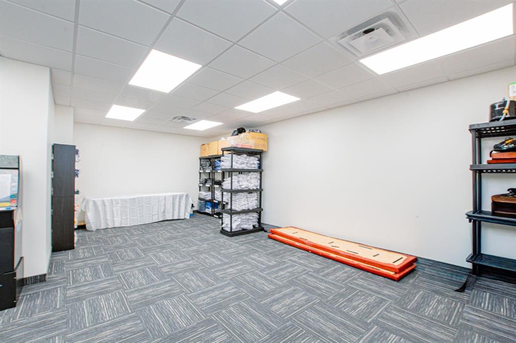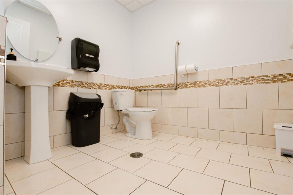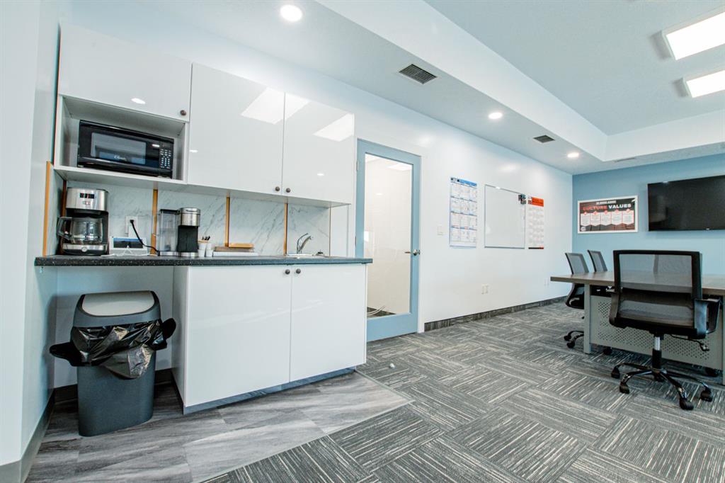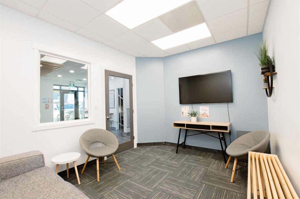Modern commercial/office space with attached side bay featuring modern décor, contemporary color palettes, and generously sized layouts with large windows that flood the space with natural light. Constructed with ICF, this 3852 sq.ft unit offers exceptional energy efficiency for heating and cooling, as well as a remarkably quiet interior environment. Enjoy parking right to the doorstep, along with a large public parking lot. This modern facility showcases beautiful finishes throughout, including tiled washr...