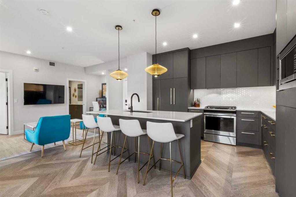 Welcome to Esquire in the heart of University District, where modern design meets a vibrant, walkable lifestyle. This ground floor unit offers next level convenience with the ability to come and go directly through your private patio, giving it a rare, almost townhome feel. Inside, the space is fresh, stylish and anything but ordinary, featuring eye catching herringbone vinyl plank flooring that runs throughout. The kitchen is a true showpiece with a large quartz island perfect for casual dining or entertai...