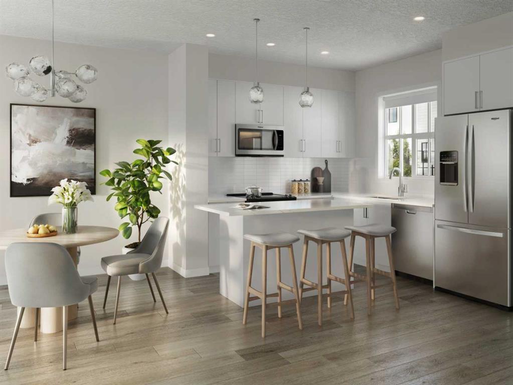 Discover this thoughtfully designed 4-bedroom townhome in the vibrant community of Rangeview, offering nearly 1,700 sq. ft. of modern living space with a fresh, airy palette throughout. Perfectly positioned to face a beautiful morning sun, this home blends comfort with community from the moment you step inside. The open-concept main living space is framed by soaring 9' ceilings and large windows that flood the space with natural light. Durable luxury vinyl plank flooring runs through the kitchen, dining, a...