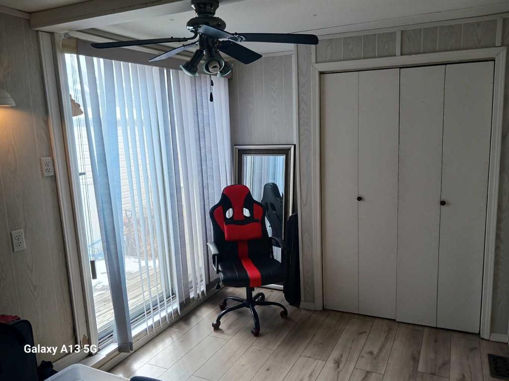 JUST FOR YOU. One bedroom home on Red Deer's north end in Mustang Acres. Renovated some time ago and offers up tiled flooring in the kitchen/dining area, and hallway. Balance of flooring is again an updated laminate in the bedroom, bath and office. Kitchen cabinets were an upgrade with adjustable shelving so you can re-jiggle where the pans go, where you can stack the dishes so it all fits best for you. Appliances are staying so you save a little money and you save a lot of time. The living room is very fun...