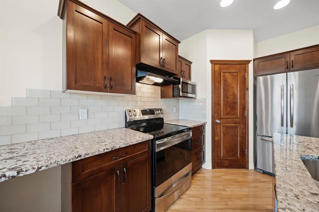 (**CLICK on 3D ICON and MOVIE REEL ICON ABOVE FOR VIRTUAL TOURS**) IMMACULATE 2-STOREY FAMILY HOME in McKenzie Towne with 3+1 bedrooms, 3.5 baths and OVER 2,500 SQ.FT. OF LIVING SPACE including the PROFESSIONALLY DEVELOPED BASEMENT. The main floor features an open concept design with soaring 9 foot ceilings, spacious office/flex room, hardwood floors and a well appointed kitchen offering stained maple cabinetry, striking granite countertops, sleek subway tile backsplash, a stylish granite waterfall counter...