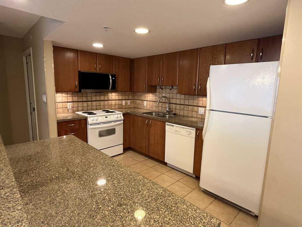 For more information, please click the "More Information" button. This condo features a highly sought-after floor plan with two bedrooms and two full bathrooms thoughtfully positioned on opposite sides of the unit for maximum privacy. With its sunny southwest exposure, the home is filled with natural light throughout the day, creating a warm and welcoming atmosphere. The spacious balcony offers beautiful views of the Bow River and Rocky Mountains, perfect for relaxing and entertaining. Just steps from Kens...
