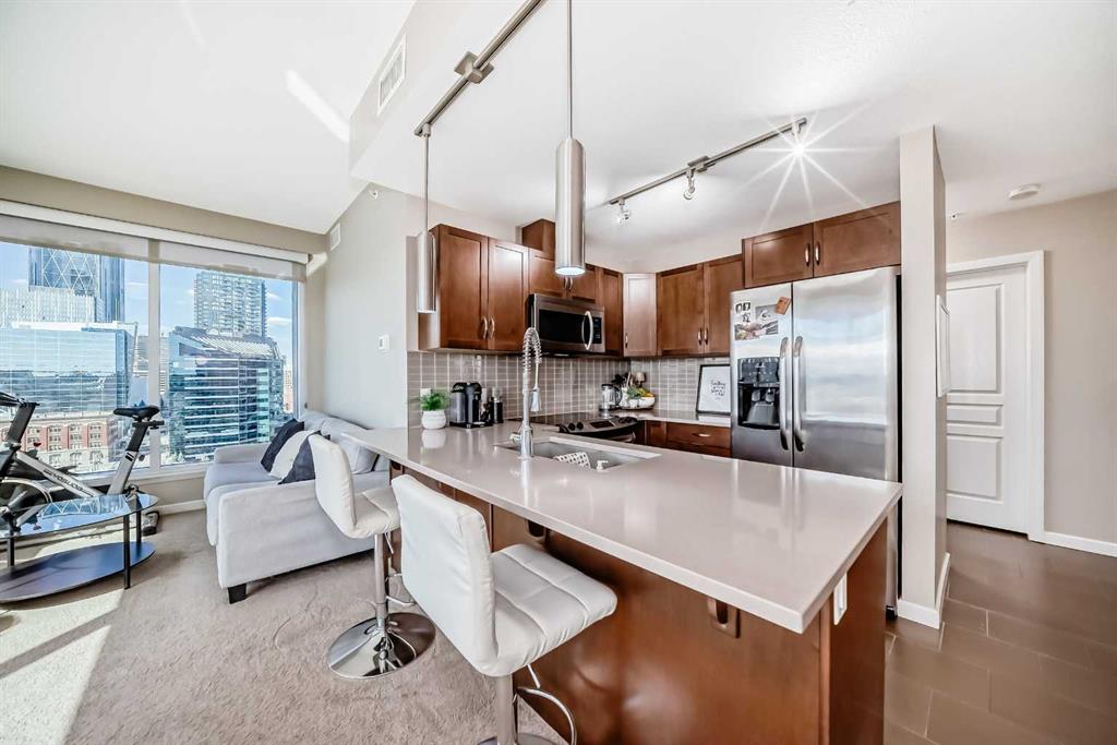Best corner unit with breathtaking views of downtown Calgary and Rocky Mountains! Welcome to your stunning 12th floor 2 bedroom 2 bathroom corner suite in Alura building, a modern gem located in the heart of Victoria Park within Calgary's vibrant Beltline district. Enjoy the vibrant downtown Calgary lifestyle, with Stampede Park, BMO Convention Centre, Saddledome, trendy 17th Ave and Victoria Park LRT Station just steps away. The unit features a 9 foot ceiling with floor to ceiling windows, which offer ple...
