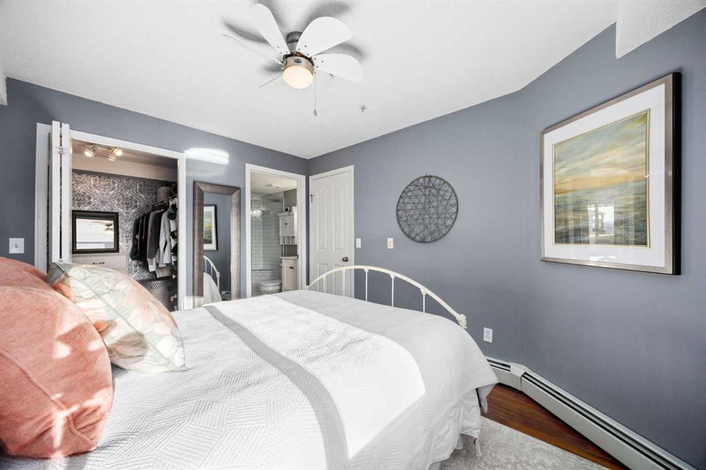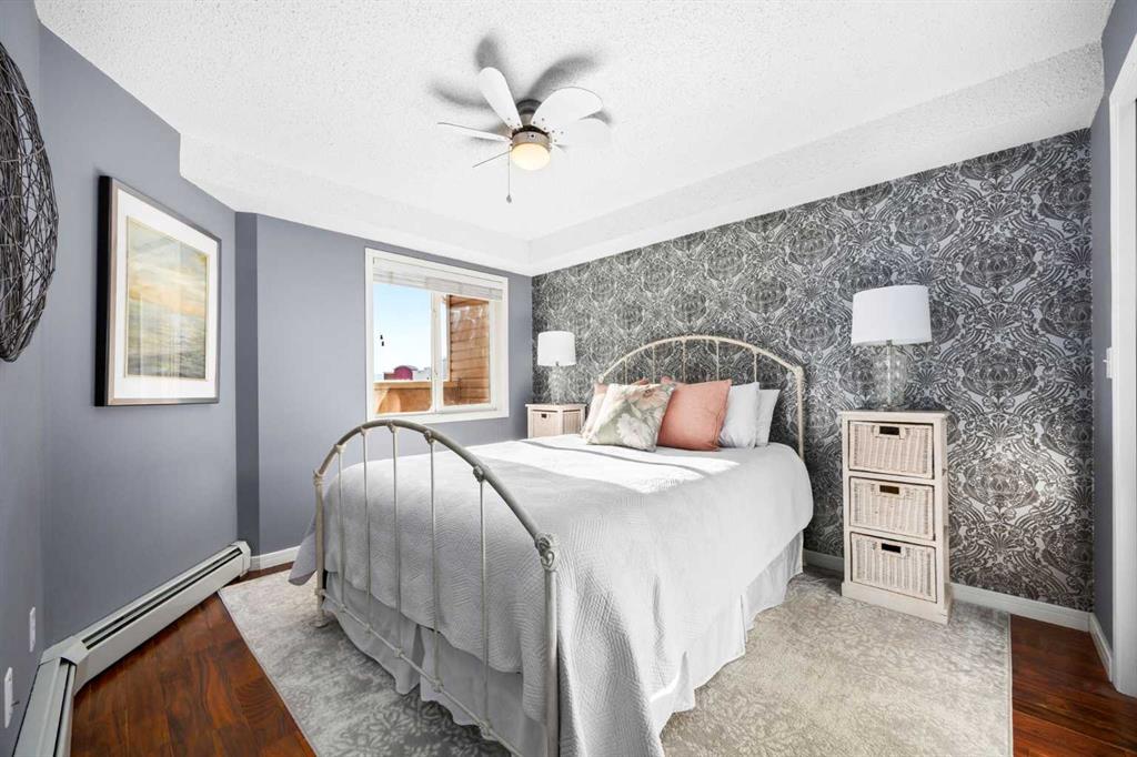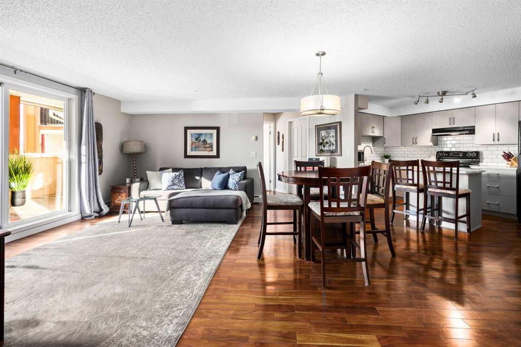 Welcome to one of the largest and most desirable units in this centrally located downtown Cochrane complex! This beautifully maintained 2 bedroom, 2 bathroom condo offers an exceptional open concept layout with stunning hardwood flooring and a bright, functional living space perfect for both everyday living and entertaining. The updated kitchen features quartz countertops, modern finishes, and a brand new dishwasher, flowing seamlessly into the spacious dining and living areas. Step outside to your massive...