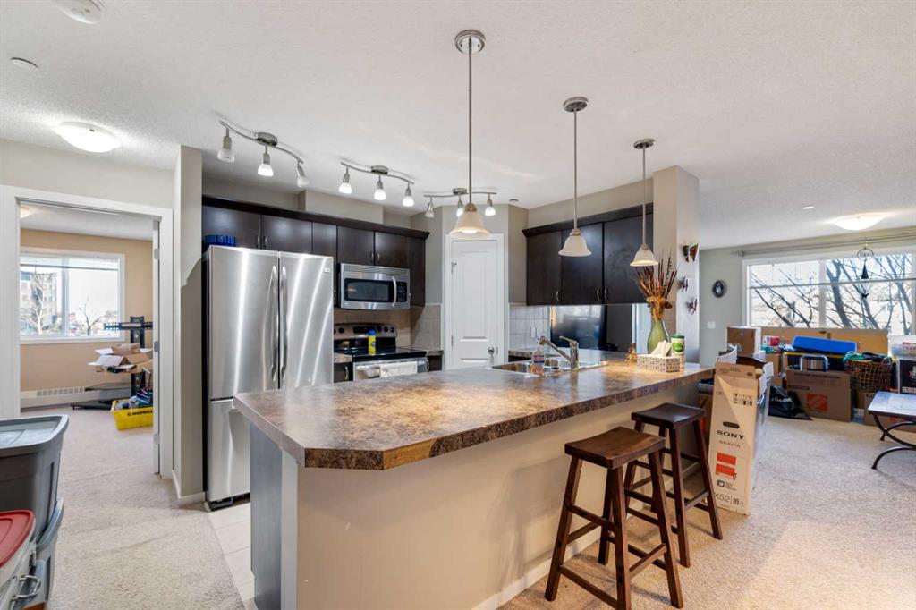 Welcome to this bright and well-designed apartment condo located in the desirable community of King’s Heights in Airdrie. This second-floor corner unit offers approximately 860 sq ft of comfortable living space, featuring 2 bedrooms and 2 full 4-piece bathrooms, including a private ensuite off the primary bedroom. The open-concept layout seamlessly connects the living room, dining area, and kitchen, creating an inviting space for everyday living and entertaining. The kitchen offers ample counter space, plen...