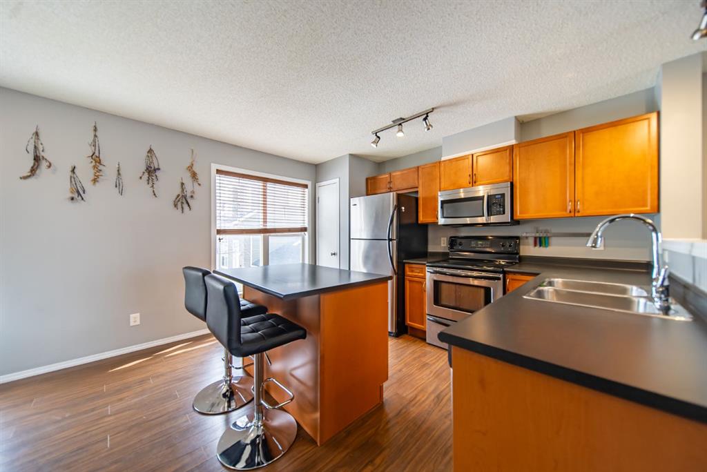 Welcome to this beautifully updated end-unit townhome, ideally located in one of the best spots in the complex with unobstructed panoramic mountain views. Offering over 1,100 sq ft, this home features a functional dual primary bedroom layout, each with walk-in closets and private 4-piece ensuites. The main floor is bright and open with a soaring 14-foot ceiling in the living room, a spacious dining area, and a well-appointed kitchen complete with a centre island, stainless steel appliances, and full pantry....