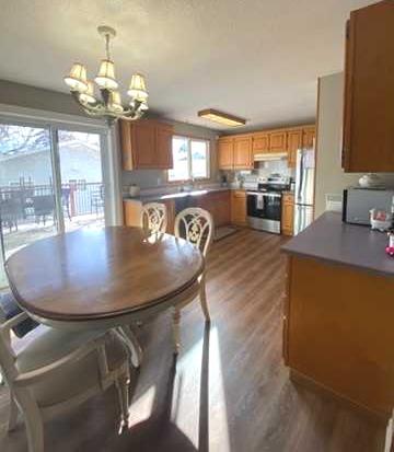 Located next to a city park with a wonderful playground, this 5 bedroom, move in ready home is sure to impress. The side entrance of the home has a beautiful custom door and provides access to the basement through a glass privacy door and leads to the kitchen through the unique glass baby gate/doggy door. This space boasts newer stainless steel stove and a new dishwasher and fridge purchased in 2025, brand new flooring and plenty of cupboards and counters including one that can be used for a coffee bar. The...