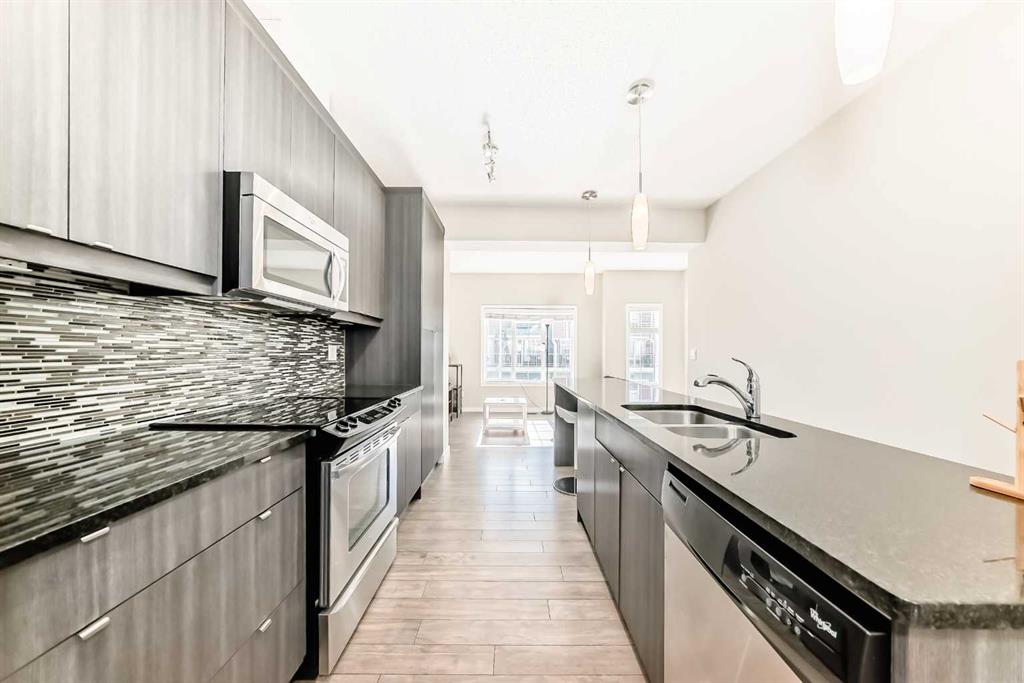 Welcome to this charming 2-bedroom plus den townhouse nestled in the picturesque lake community of Mahogany! Perfect for investors, first-time buyers, or those looking to downsize, this home showcases a modern open-concept design with 9-foot ceilings that seamlessly connect the living room, dining area, and chef’s kitchen. The kitchen is a standout, featuring sleek granite countertops with an extended island, stainless steel appliances, pantry, and ample storage. Step out onto the sunny balcony with gas lin...