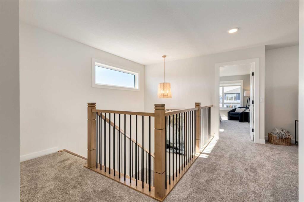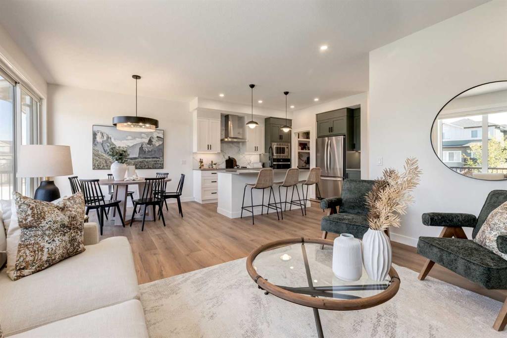 This beautifully designed former showhome offers a bright, open-concept layout that seamlessly connects the kitchen, dining, and living areas, creating an inviting space for both everyday living and entertaining. The kitchen is thoughtfully appointed with a large central island, quartz countertops, stainless steel appliances, and a striking blend of white and rich green cabinetry. A butler’s pantry and walkthrough mudroom connect the garage to the kitchen, adding exceptional functionality and storage. Penda...