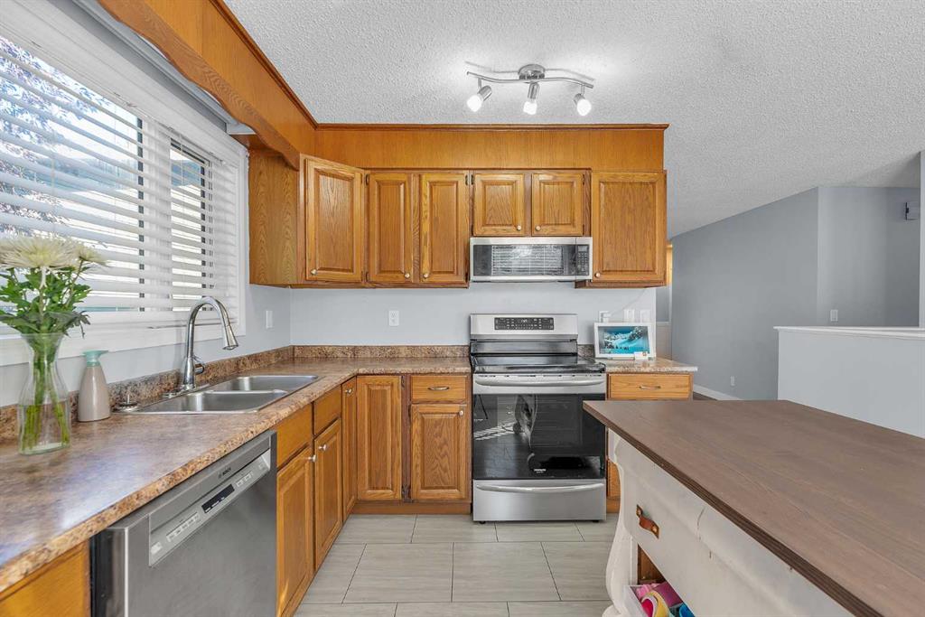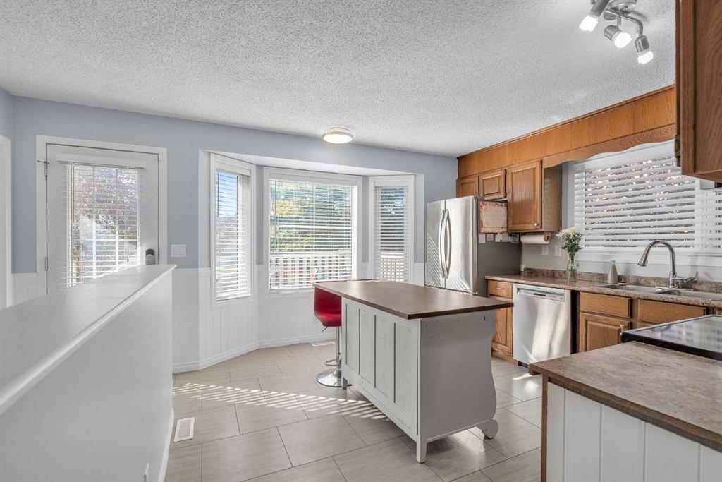 Welcome to this spacious and well-maintained bungalow located in the heart of Crossfield, close to schools, shopping, transportation, and recreational facilities. This home features a total of five bedrooms and three full bathrooms, offering plenty of space for a growing family. The main floor includes a generous living room, dining area, and a bright eat-in kitchen with a large window overlooking the sunny south-facing deck and backyard. The primary bedroom includes a private three-piece ensuite and conven...