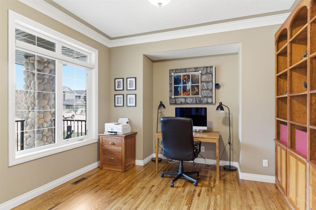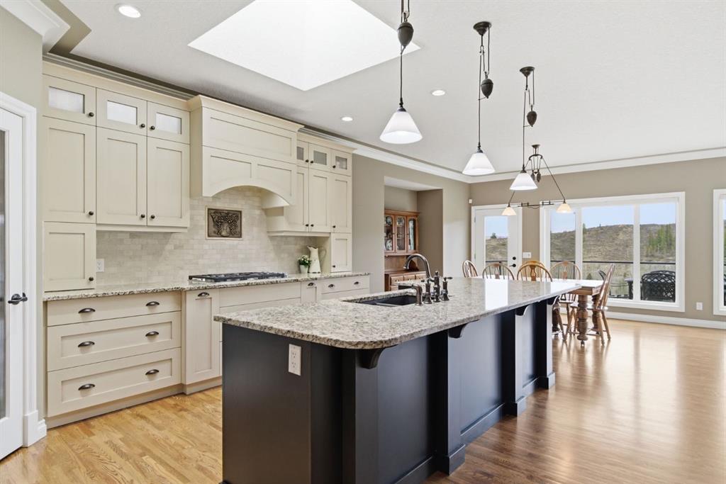 Welcome to 135 Jumping Pound Terrace. Your invited to our open house this Saturday April 25th from 11 am to 2 PM to explore this beautiful Walk-out Bungalow which backs onto the Jumping Pound Ridge with the Creek in the Valley below. Imagine no neighbors behind. Wake up to the Sunny back deck with incredible views of the Valley and Cochrane beyond. This home features 2,795 sq ft of living space with and office near the front entrance. The Gourmet kitchen is a must see with Exquisite white tall cabinets...