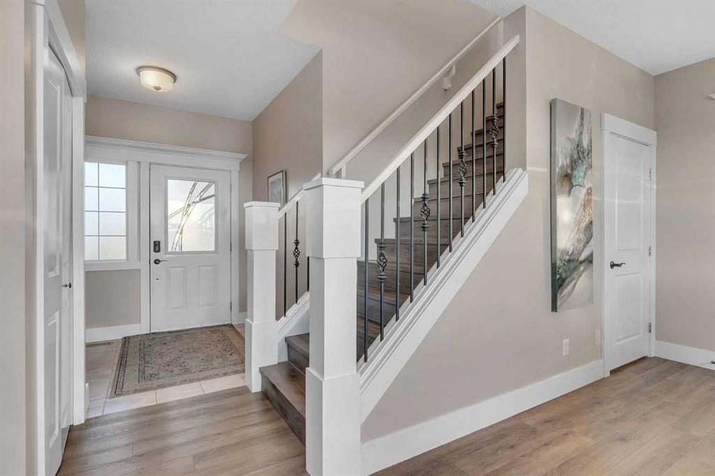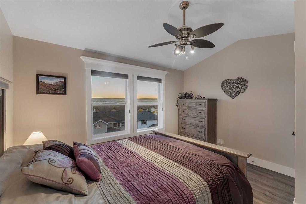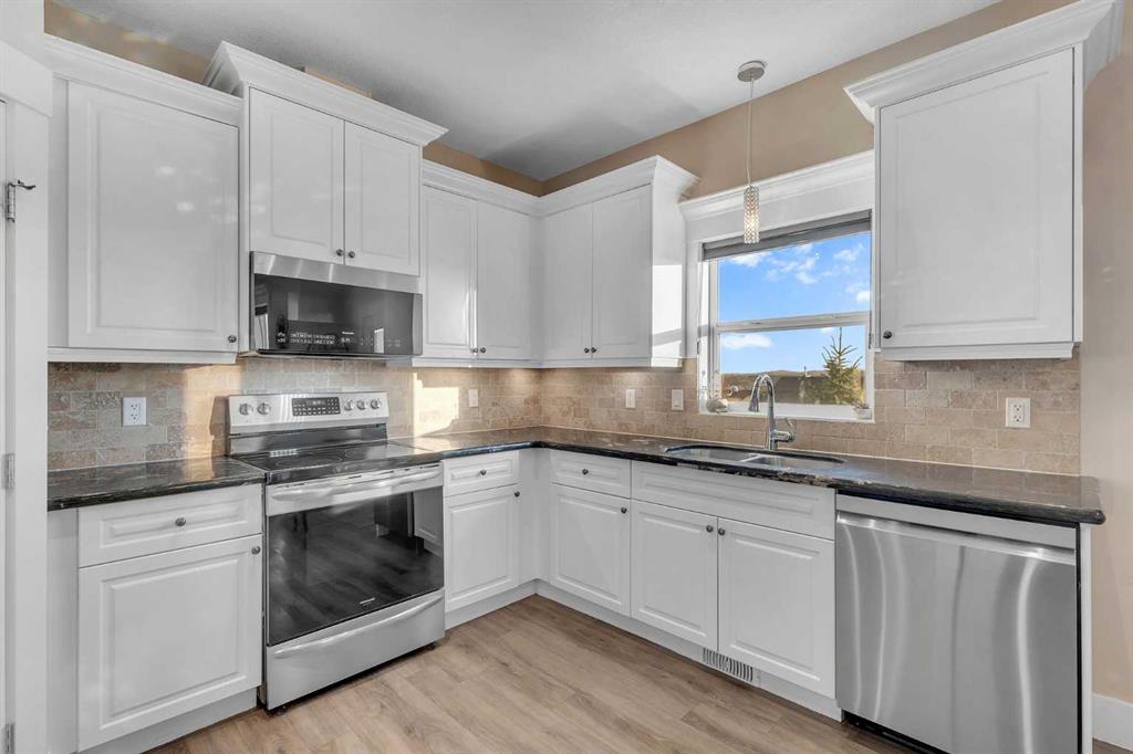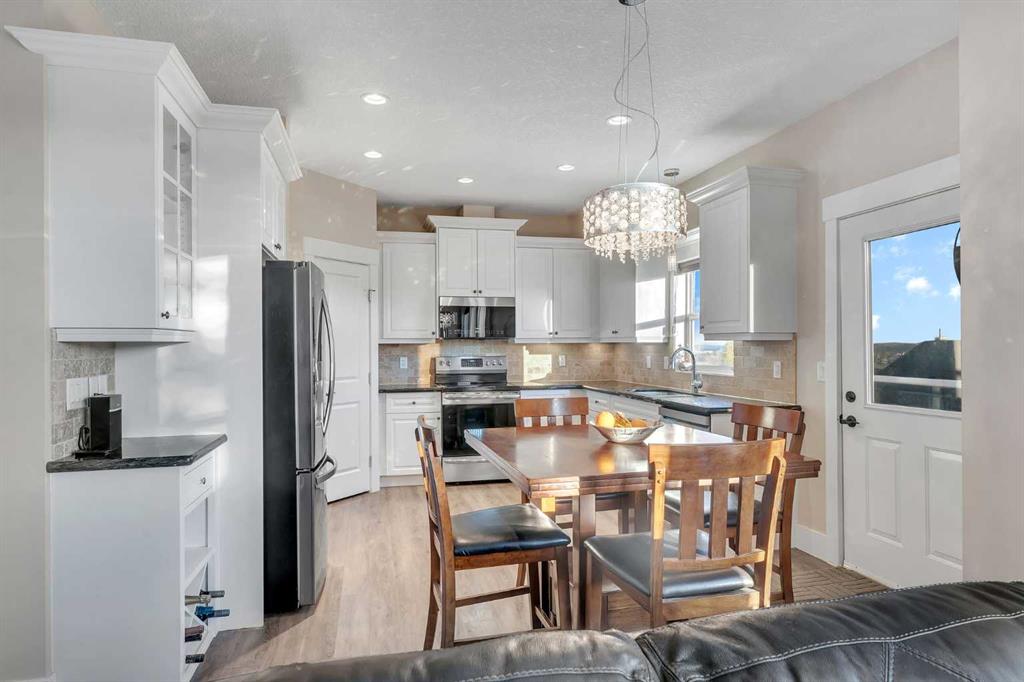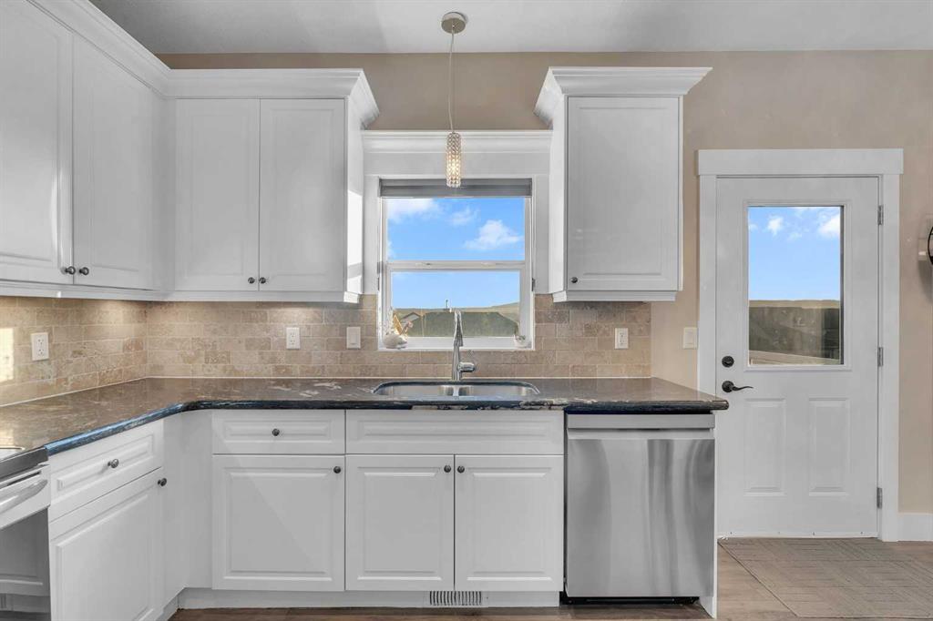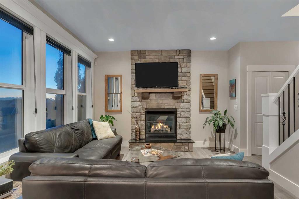 Perched on a quiet cul-de-sac, this home offers sweeping west-facing views over rolling hills and the snow-capped Rocky Mountains. From the moment you arrive, there’s a sense of space, light, and comfort that makes this property stand out. Inside, the open-concept main floor is bright and welcoming. The living room features a striking floor-to-ceiling rock fireplace, creating a warm focal point for everyday living or entertaining. Large windows flood the space with natural light and frame stunning mountain...