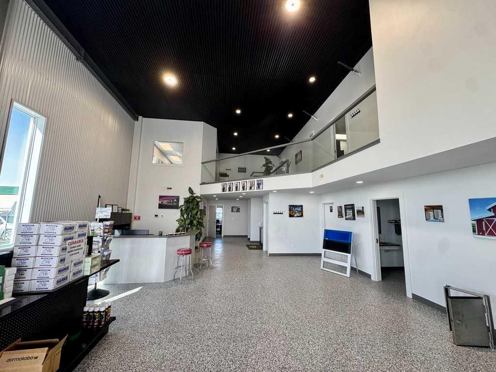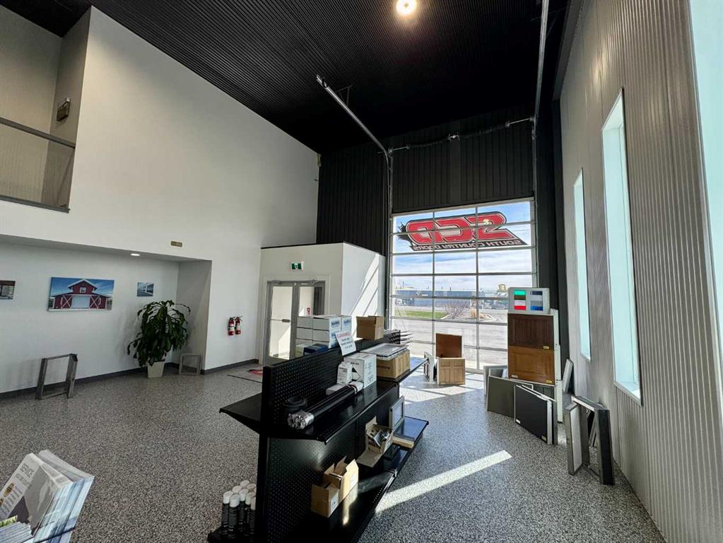 Conveniently located in Fort Macleod, this is a very modern building with a versatile layout that includes approximately 4300 sqft of Warehousing with loading dock and 2100 sqft for Office space and showroom. The Showroom & reception area have high ceilings and lot's of floor space for your customers. There is a large boardroom for meetings as well as a coffee station and guest washrooms. The staff lunchroom is just off of the warehouse which features radiant heat, Mezzanine storage and staff washrooms...