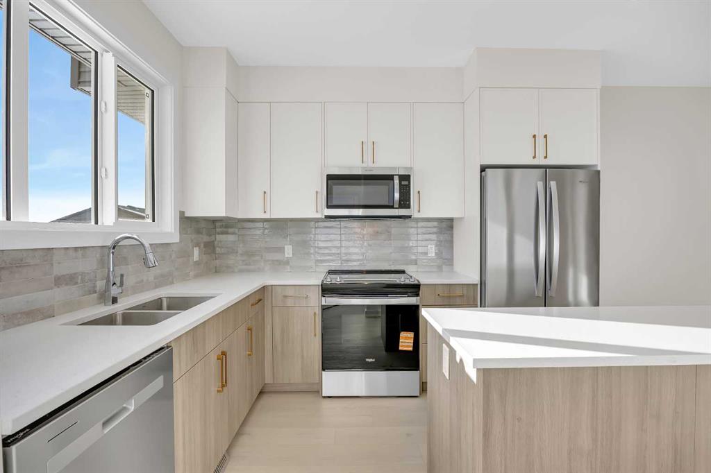 Welcome to the Charlotte by Partners Homes, a thoughtfully designed paired home offering a functional layout and well-selected finishes in the southeast Calgary community of Logan Landing. The main floor features 9’ ceilings and an open-concept design that balances everyday comfort with practical living. The rear kitchen is both efficient and inviting, finished with upgraded MDF cabinetry, quartz countertops, a custom backsplash, and a central island. A stainless steel appliance package, including an upgrad...