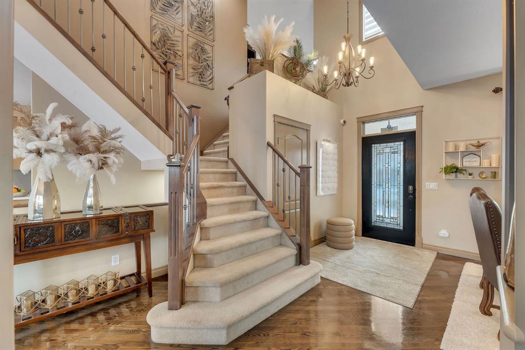 Welcome to this stunning former show home in the heart of Chestermere, proudly offered by the original owners and impeccably maintained throughout. From the moment you arrive, you’ll notice the extended concrete driveway offering extra parking, professionally installed LED front trim lighting, a charming front deck ideal for morning coffee, and low-maintenance, high-grade professional turf in both the front and backyard. Underground sprinklers service all flower beds for added convenience. Step inside thro...