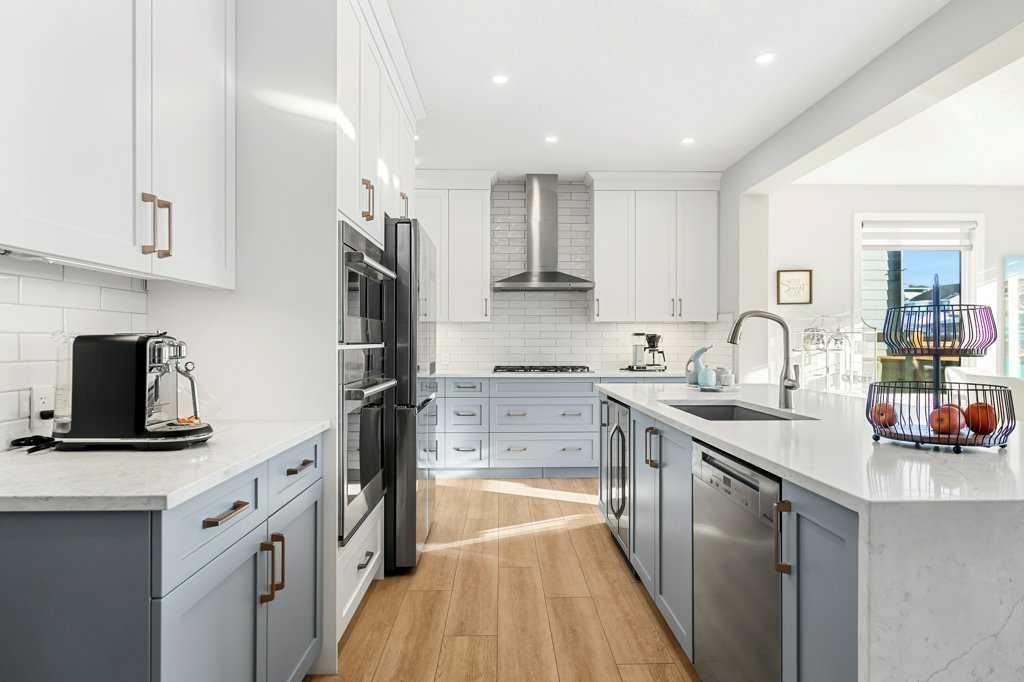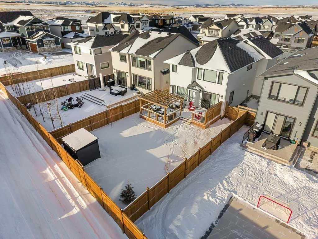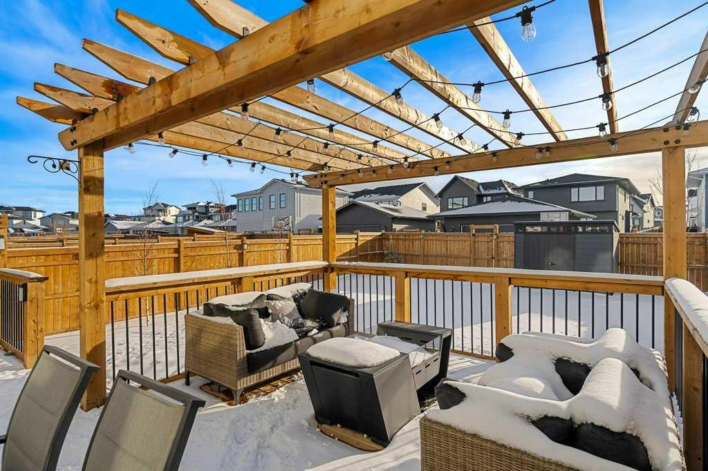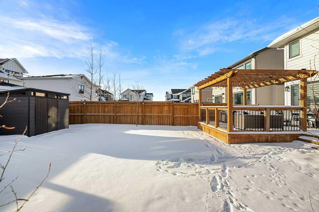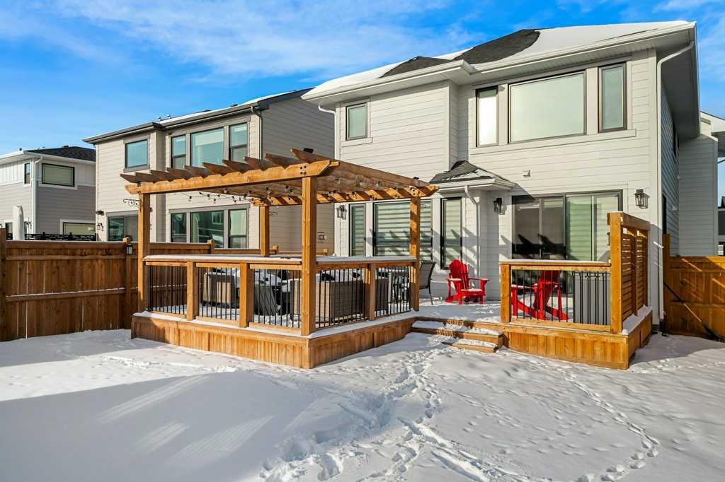 Exceptional Sterling Homes built Allure 3 plan featuring a south-facing backyard and extensive upgrades throughout. The exterior showcases durable Hardie board and stone, with an attached double garage and paved back lane. The oversized, fully fenced yard (approximately 139–135 feet deep) includes a large deck, privacy-side pergola, storage shed, BBQ gas line, and expansive sliding doors that seamlessly connect indoor and outdoor living. The main floor is thoughtfully designed with 9’ knockdown ceilings, L...