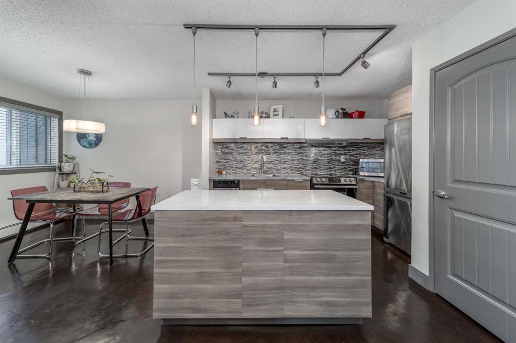 **OPEN HOUSE SUNDAY MARCH 1 ~ 1:00 - 3:00PM** Welcome to this beautifully updated one-bedroom + loft condo, tucked away on a quiet street just steps to the Bow River Pathway and an easy walk to work, shopping, cafés, and recreation. Located in a boutique 20-unit building, this home offers privacy, character, and a prime inner-city location. The main level features an open-to-above design with soaring living room windows, stained concrete floors, and a cozy wood-burning fireplace, adding warmth and style. Th...