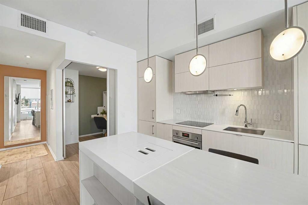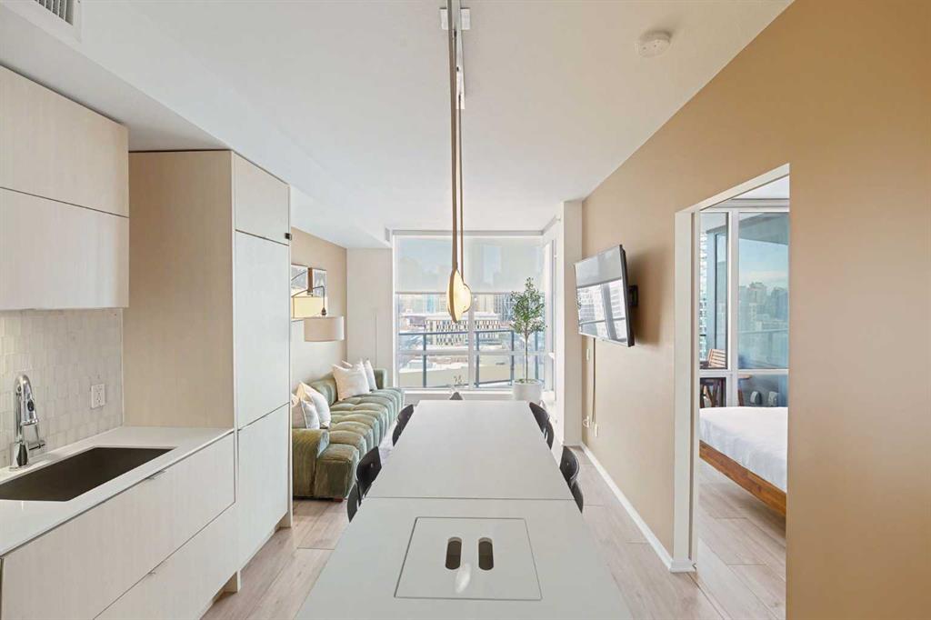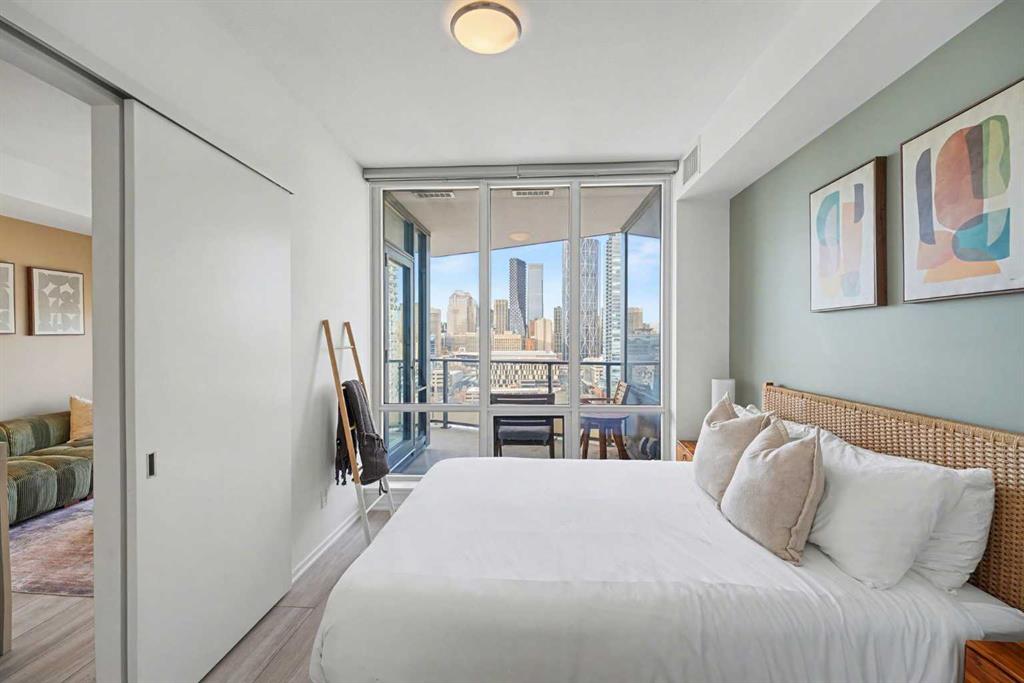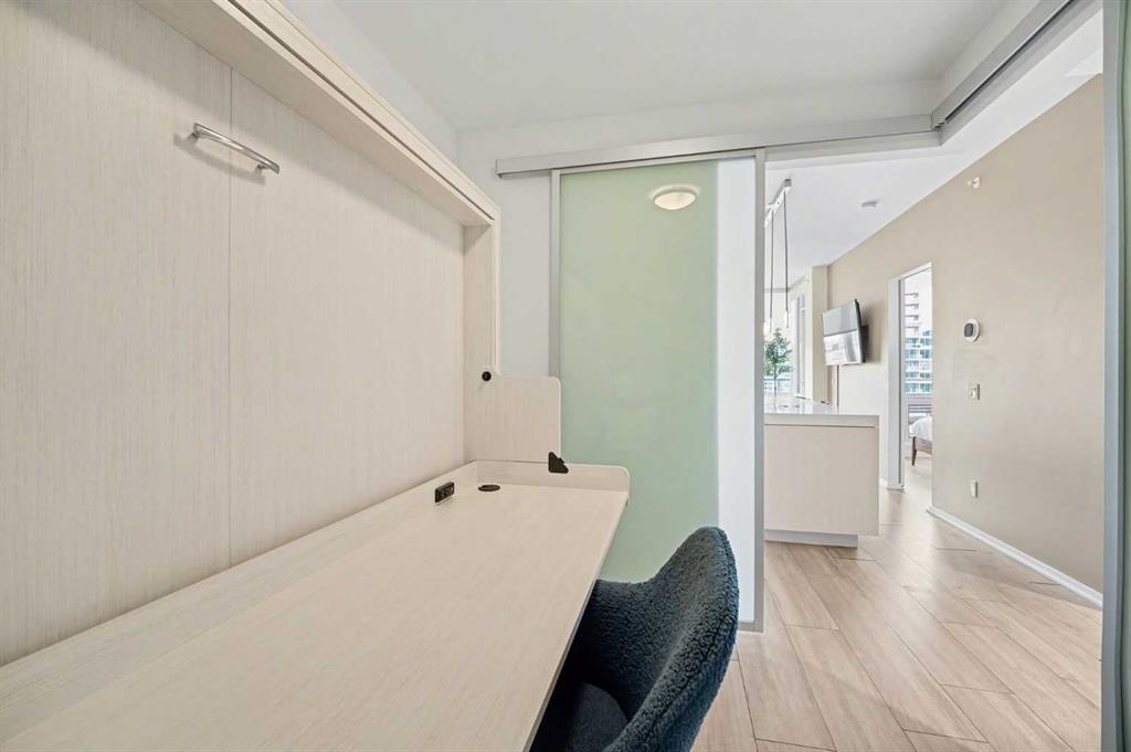 Experience refined inner city living from the 17th floor of Verve, a contemporary and secure high rise in the heart of East Village offering full concierge service and impressive resident amenities. This thoughtfully designed one bedroom, one bathroom plus den residence delivers both functionality and style, with expansive windows that frame beautiful views and flood the home with natural light. The primary bedroom is spacious and inviting, while the versatile den features a built in Murphy bed, making it ...