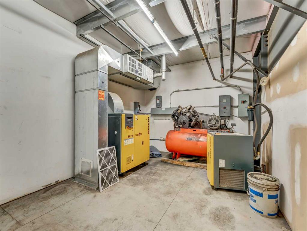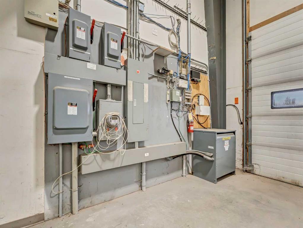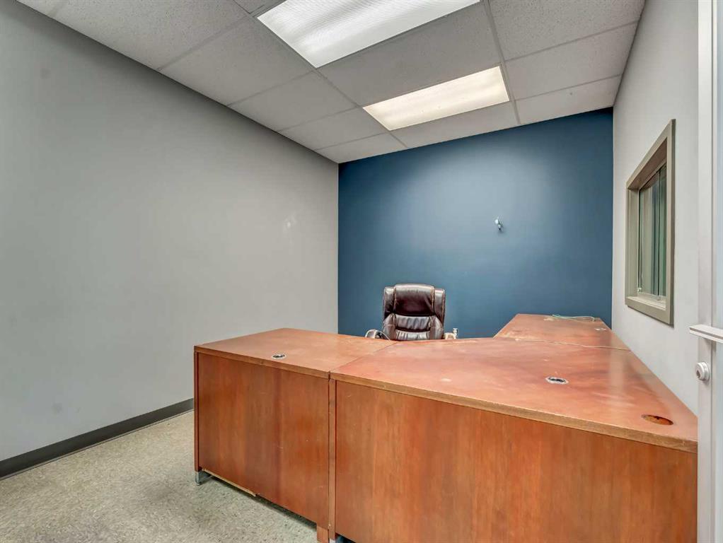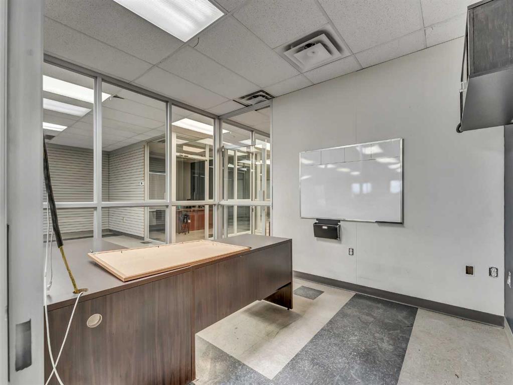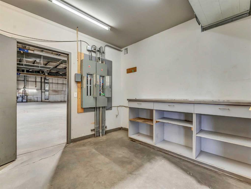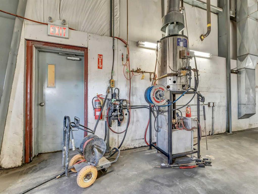 Exceptional commercial industrial sublease opportunity offering a versatile setup for shop, warehouse, shipping, receiving, showroom, and staff support functions. This metal-clad property features a fully fenced yard with a mix of paved and crush surfaces, access from the avenue, a large paved staff parking area, and substantial bollards protecting the overhead doors. One workshop is well equipped with four drive-through bays featuring 16-foot overhead doors, a 5-ton overhead crane, make-up air units, airli...