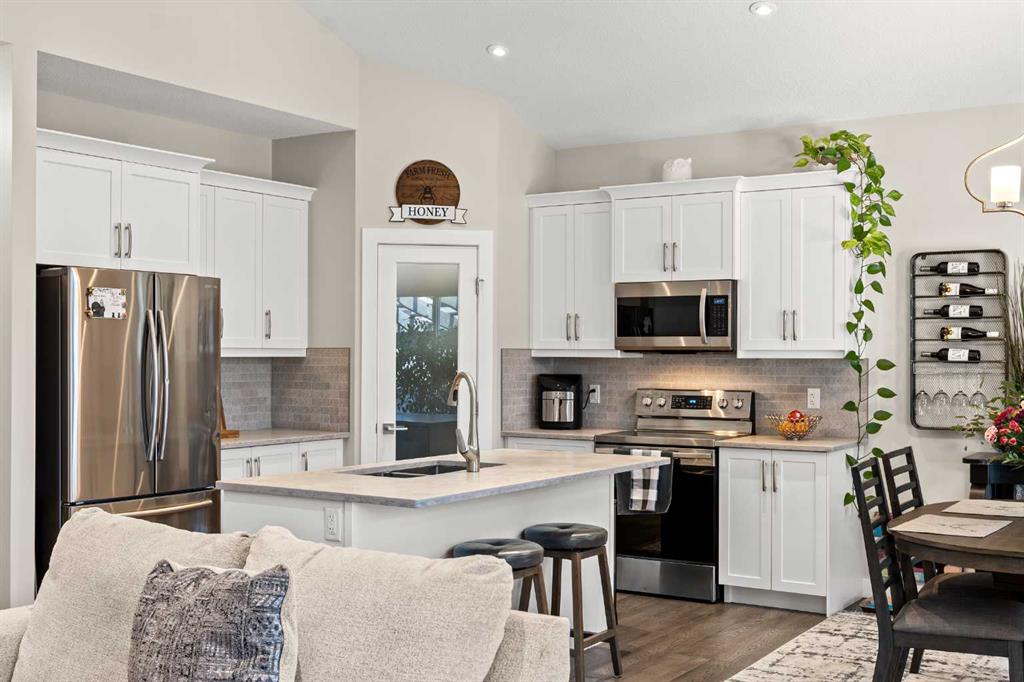 Welcome to the sought-after, family-friendly community of Drake Landing, prized for its proximity to schools, recreation facilities, scenic walking paths, and everyday amenities. This modern, sun-filled bungalow is loaded with upgrades, including an oversized heated double garage, triple-pane windows, hardwood and tile flooring, granite countertops, central A/C, and an on-demand hot water system. Vaulted ceilings enhance the bright, open feel throughout the main living space. The chef-inspired kitchen is de...