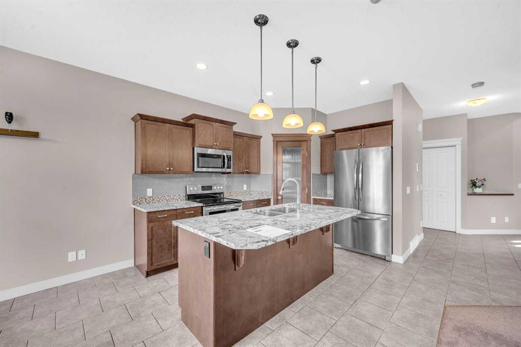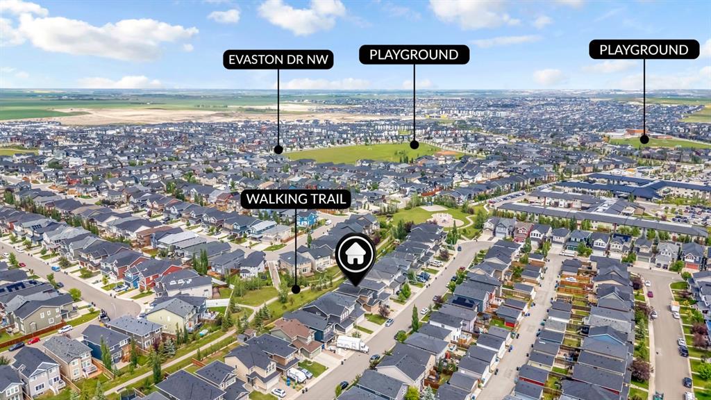 Backing onto Walking Paths and Park, Nestled in the Heart of Evanston! Welcome to the perfect family home in Evanston, beautifully upgraded and ideally located backing onto green space and walking paths! This inviting home offers numerous features, including central air conditioning, a gas fireplace, tiled flooring, and 9-foot ceilings throughout the main floor. You're welcomed by a spacious front entrance with ample closet space. The open-concept main floor features a modern kitchen with custom dark wood c...