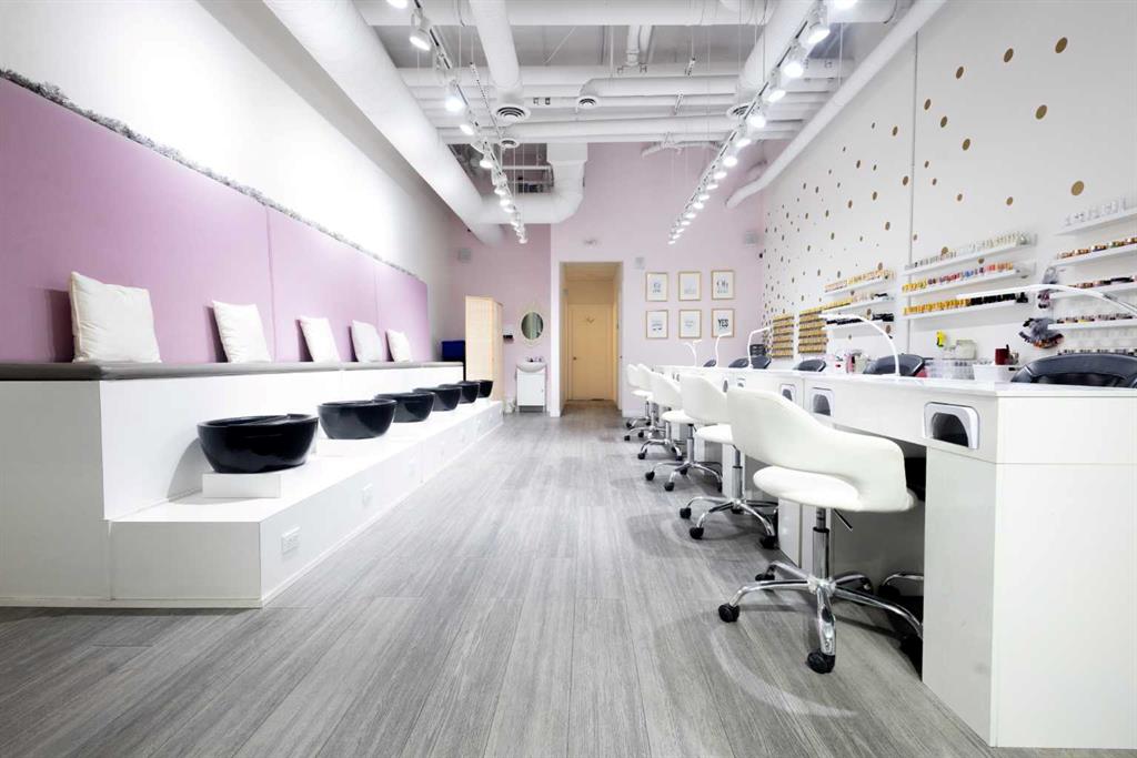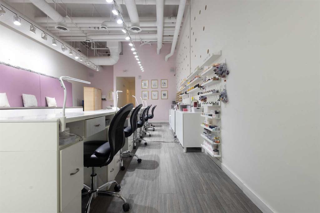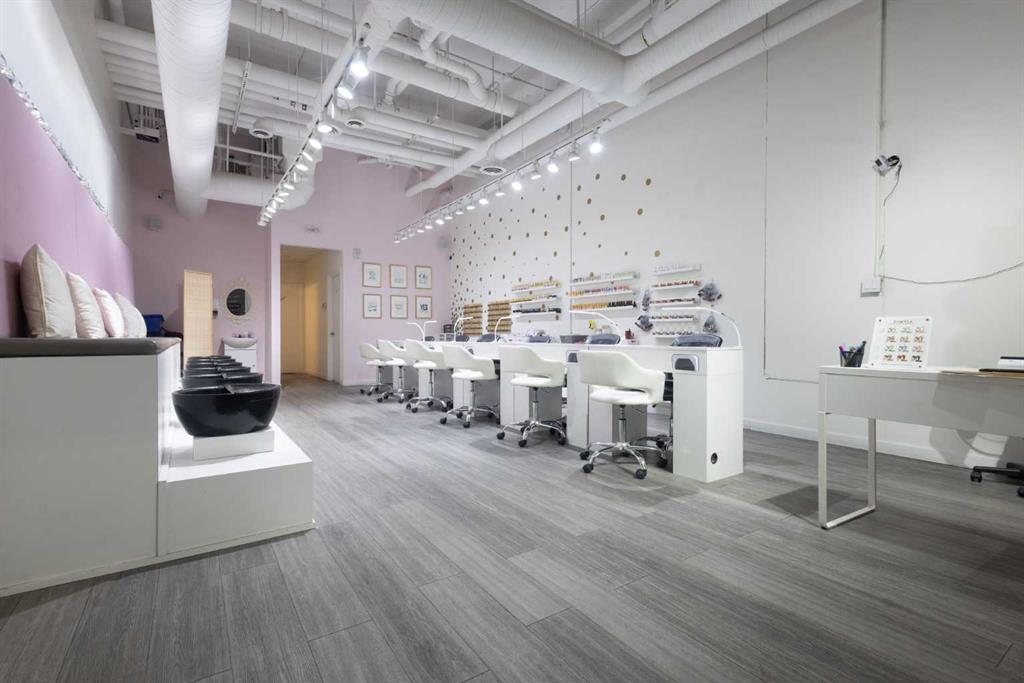 Exceptional opportunity to acquire a fully built-out, turnkey Nail Salon & Spa in a prime Calgary location. This stunning, modern salon has been designed and finished to an exceptionally high standard, offering an immediate income-generating operation for the right buyer with zero build-out costs. The main floor commercial space with high traffic adjoining businesses benifits this salon which features 6 professional manicure stations along a sleek top bench with individual LED lamps and UV nail dryers, plus...