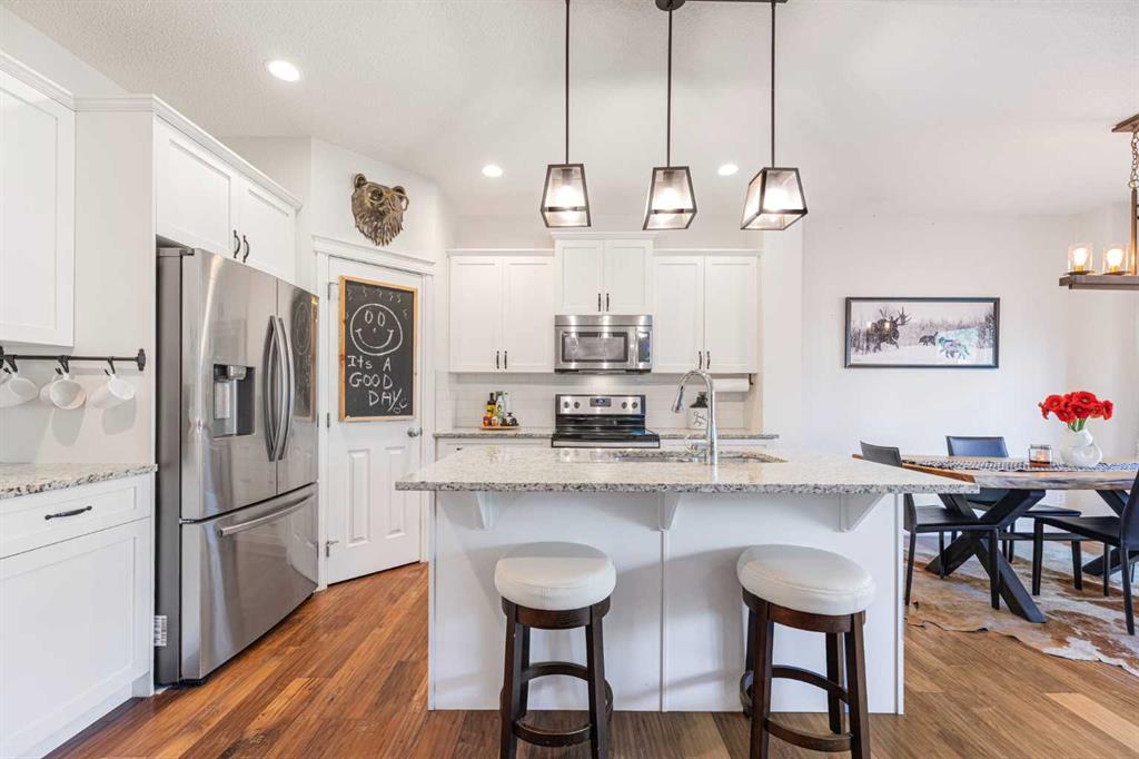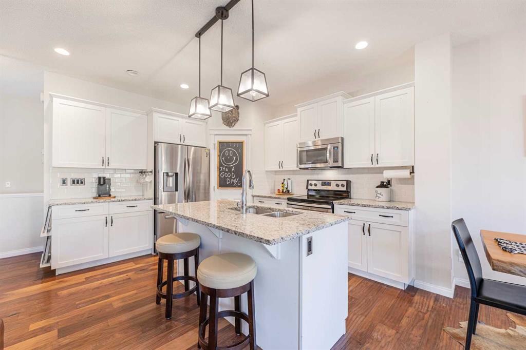 Welcome to this beautifully maintained family home, perfectly situated in the vibrant community of Heartland. Filled with natural light, the stunning vaulted bonus room overlooks a playground and park—an ideal setting for relaxing evenings or family time. The open-concept main floor is designed for both comfort and entertaining, featuring a spacious great room with a cozy gas fireplace, a bright dining area, and a well-appointed kitchen complete with an island and ample cabinetry. Upstairs, you’ll find a s...