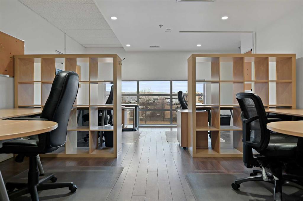 Commercial condos of this type are rare to find on the market in Airdrie. The unit is within the Kingsview Plaza, with excellent access to 40th Ave, Deerfoot Trail, Kingsview Market and Yankee Valley Blvd. The zoning is IB-1 for a variety of businesses, including business services, some retail and industrial services, animal services, microbrewery, health care and more. The condo includes 3,110 sq. ft. on 2 levels, consisting of a 570 sq. ft. shop / warehouse, reception, office, kitchen, bathroom and storag...