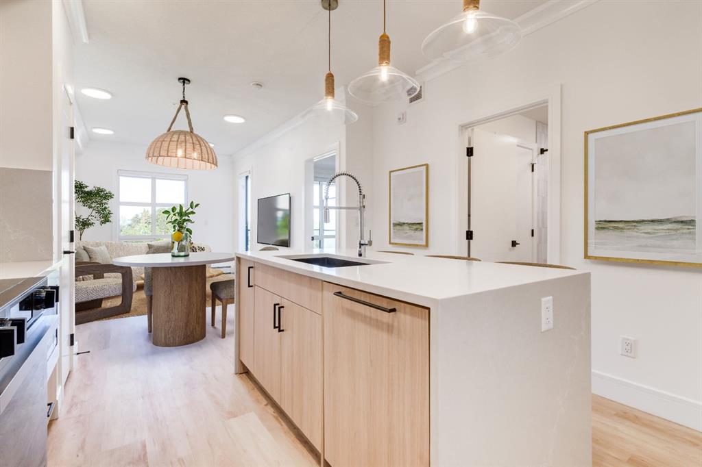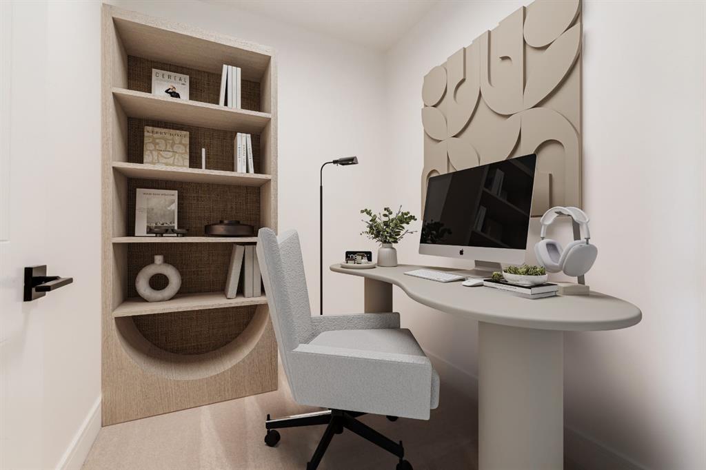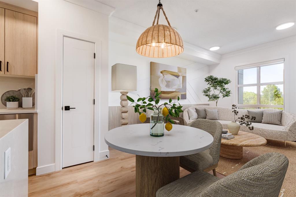 Welcome to Dean's Landing by Rohit Homes, where contemporary design meets urban convenience in Calgary's sought-after University District. This stunning new build condo offers the perfect blend of luxury, functionality and convenience making this an ideal spot to call home. This 1 bed, 1 bath and den apartment boasts high end finishings, in suite laundry, waterfall quartz counter tops, triple pane floor to ceiling windows and a private balcony. Best of all, you can choose from one of three Designer Interior...