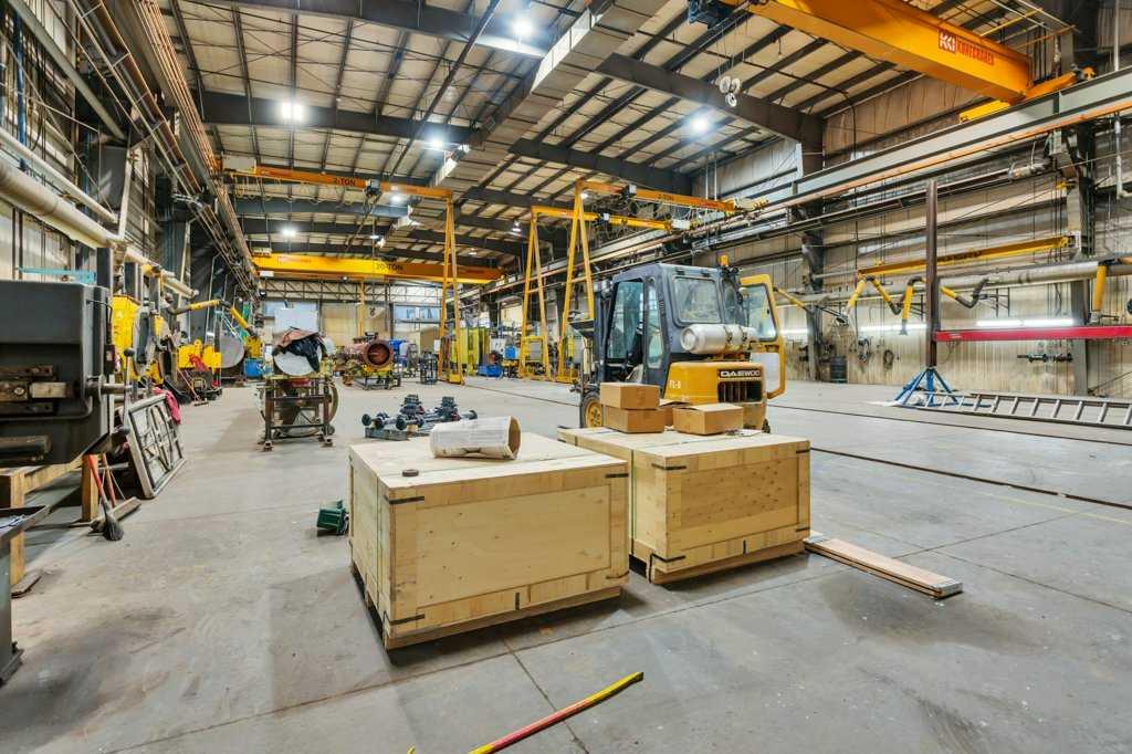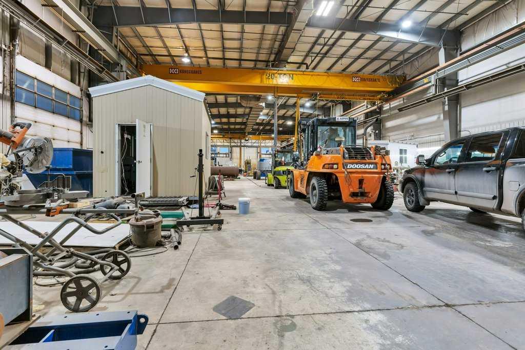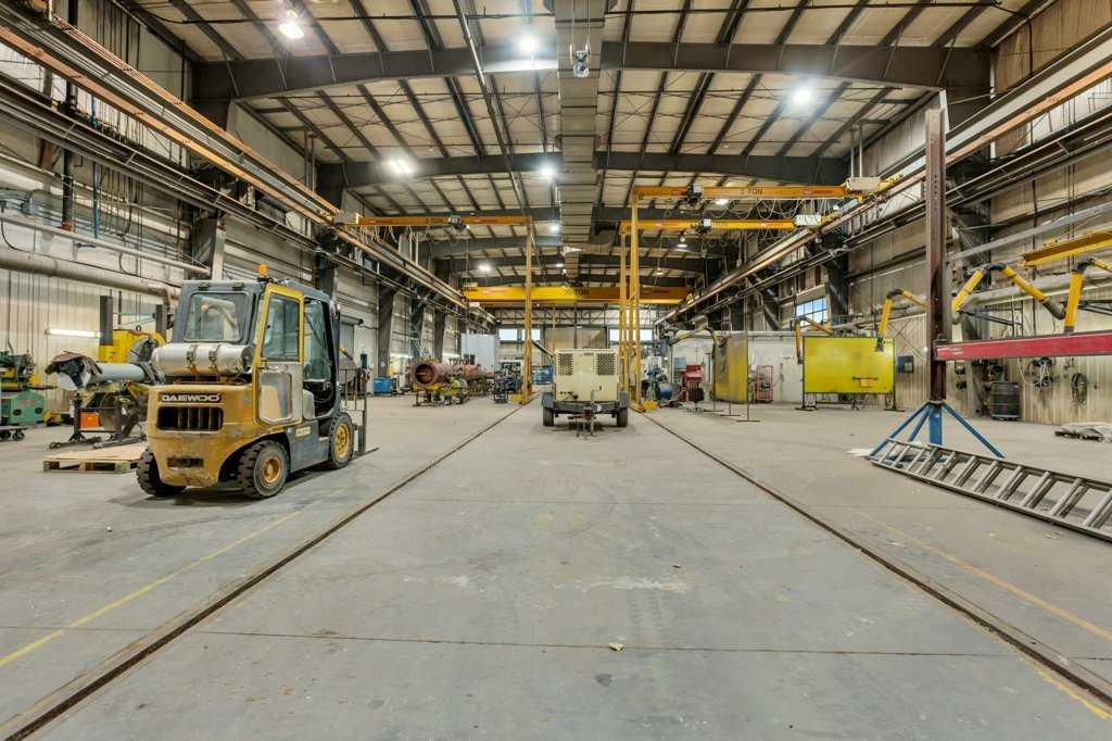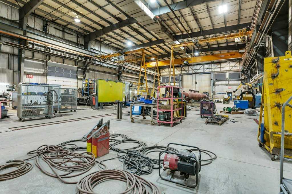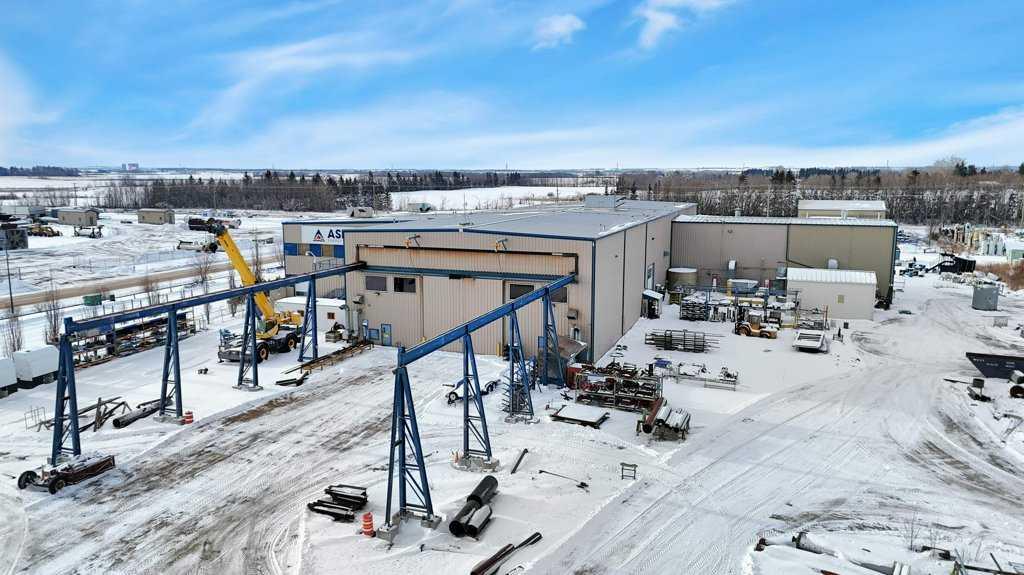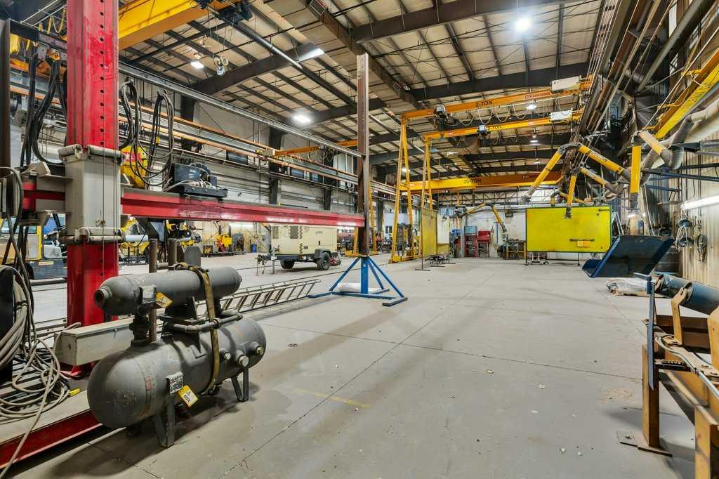 Now offering "For Lease" in the fast paced and quickly expanding area of Gasoline Alley next to the south end of Red Deer, AB. A well maintained and equipped 45,553 sqft office / shop / manufacturing facility on approximately 5 acres. 2 story multiple office area and an attached 29,200 plus sqft shop, detached cold storage building, sandblasting building, and storage tent. The shop consists of a 10 ton and 20 ton crane on the east and west ends of the shop that are capable of travelling to the exterior of t...