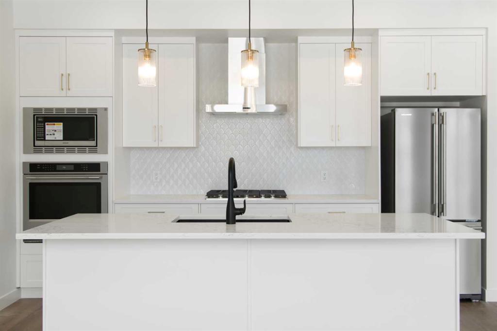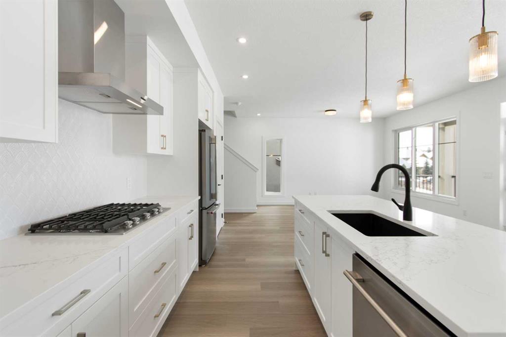 Brand new and situated in the prestigious community of Aspen, this fully finished single-family home offers over 2350 sq ft of developed living space! With 4 bedrooms and 3.5 bathrooms. You won't find a better-priced detached home in the area! The open-concept main floor features a chef-inspired kitchen equipped with a gas cooktop, built-in wall oven and microwave, and elegant gold pendant lighting over a large quartz island. Large windows flood the living and dining areas with natural light, highlighting t...