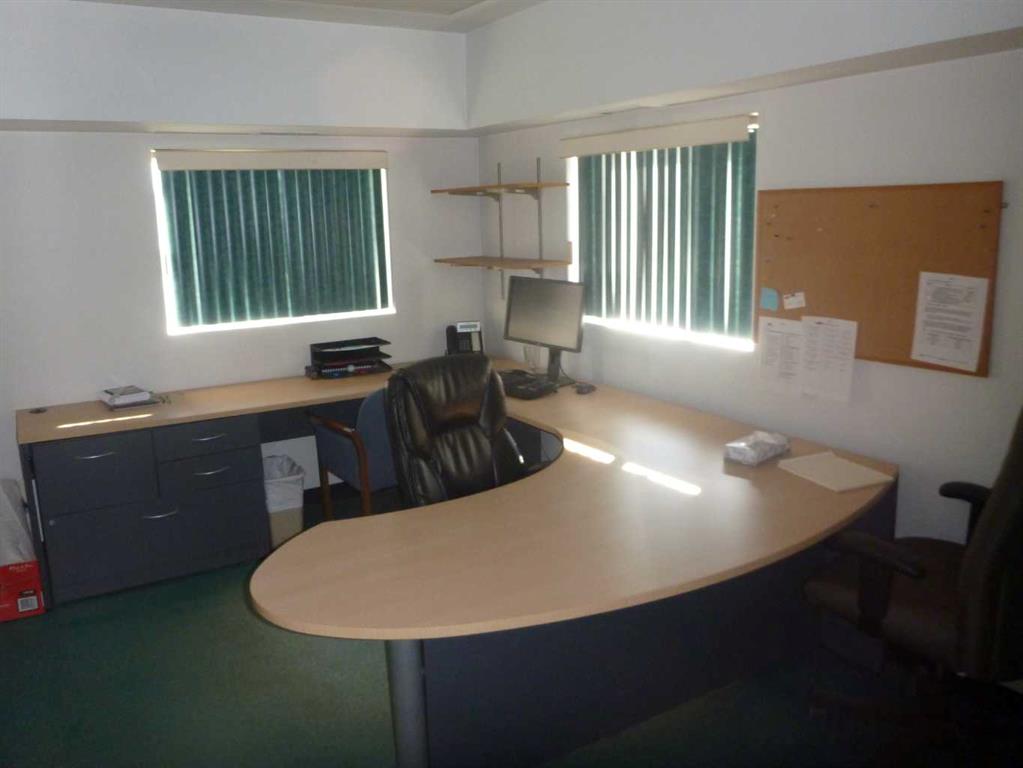 4800 Square Foot Industrial Shop for sale in Slave Lake. Shop area is 3,600 square feet and has three 16' x 14' overhead doors and a ceiling height of 18'. 200 AMP 3 Phase power in shop. Make-up air in shop. There is 1,200 square feet of office space on the main floor and it consists of 4 offices, a large reception area and a 2 piece bathroom. This office area has air conditioning. There is a 1,200 square foot mezzanine with a staff room area, a storage room, a 2 piece bathroom and the mechanical room...