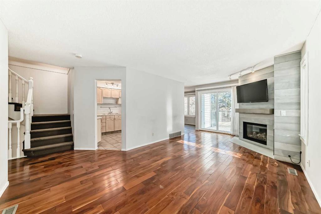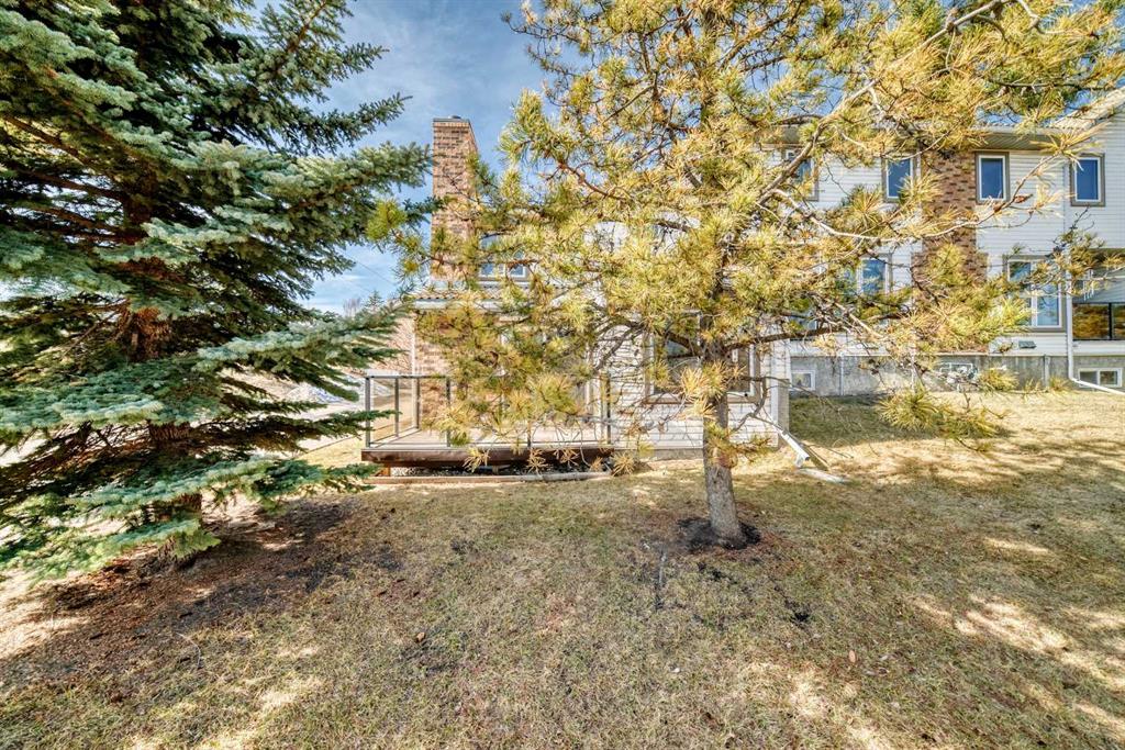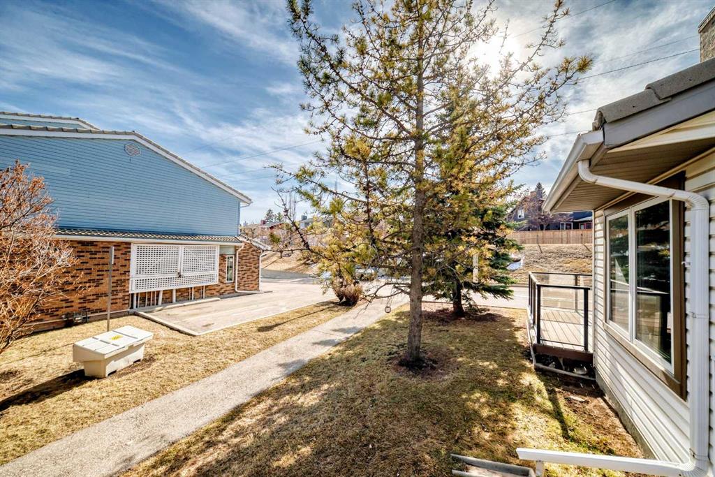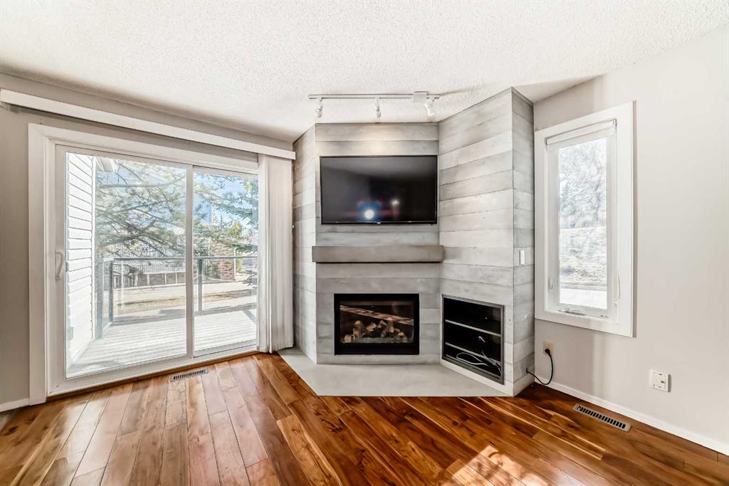 The Absolute best location & floor plan in Coachway Garden in the sought after community of Coach Hill. This end unit sides onto a quiet south facing lane way providing spacious surrounding & backs onto a private composite deck featuring glass railing with mature tree's & rear walkway. Step inside to this welcoming entry leading to the spacious kitchen with plenty of cupboards & dining room filled with natural light. The generous living room boasts a custom & tasteful concrete surround gas burning firepla...