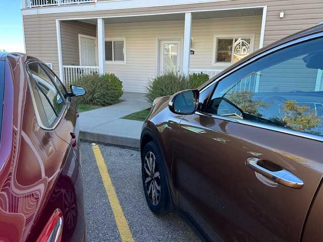 Super clean ground floor, end unit condo. ALL new LG. fridge, stove, dishwasher; have 5 year extended warranty!* B.I. microwave, Spacious kitchen has plenty of cabinetry, granite countertops, roomy breakfast bar, cozy comfy living room. Dinette opens to secluded back patio area, ideal for BBQ + secluded sunshine seating! Front patio also has seating area plus a great storage room! You will LOVE the mst. bdrm. + gorgeous full ensuite** 2 assigned parking stalls; quiet corner location, Large den has closet...