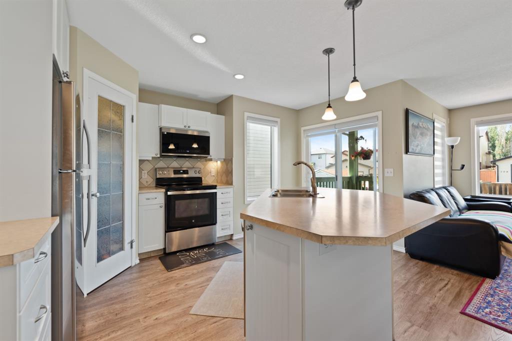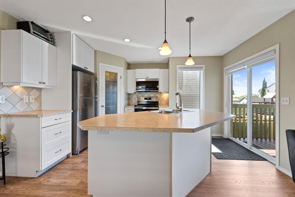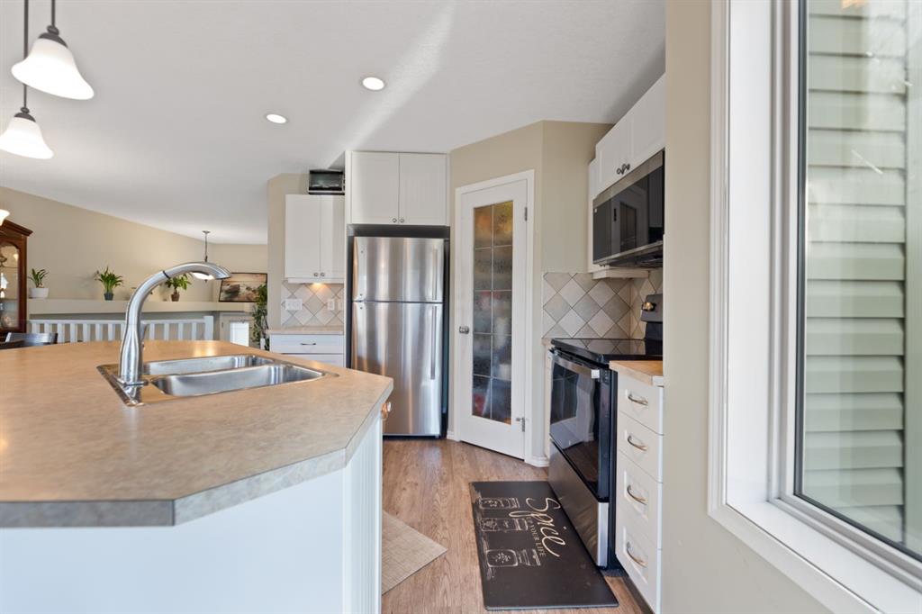 A very well kept, landscaped and fenced bilevel home on a quiet crescent in Coventry Hills. Open floor plan with an abundance of natural light on both levels. Very functional kitchen with brand new stainless steel appliances, spacious pantry, pot drawers and an island with breakfast nook. Dedicated dining area. Living room features a gas fireplace with stone surround. Two good sized bedrooms and a 4 pc bathroom completes the main floor. Patio doors open to a two tiered deck for you to enjoy the west facing ...