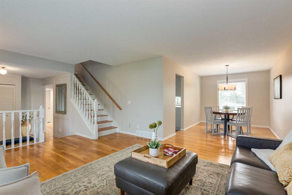 Tucked away on a quiet cul-de-sac, this original-owner home offers extensive updates, timeless charm, and an unbeatable location! This thoughtfully maintained property rests on a flat lot with a sunny south-facing backyard that opens directly onto a tranquil greenbelt walking path leading directly up to Nose Hill Park — a rare and coveted feature. Stepping inside the home, the main floor showcases gleaming hardwood flooring throughout the living room, dining room, hallway, and staircase. Light floods the ho...