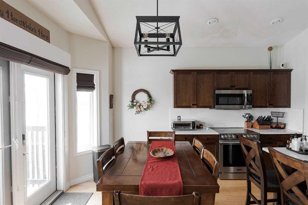 Step into this beautifully appointed modified bi-level, where soaring vaulted ceilings and gleaming hardwood floors create an immediate sense of space and sophistication. Designed with both style and functionality in mind, the open-concept kitchen and living area offer the perfect atmosphere for everyday living and effortless entertaining. The chef-inspired kitchen is a true centerpiece, showcasing rich espresso maple cabinetry, a large walk-in pantry, sleek stainless steel appliances, quartz counter tops ...