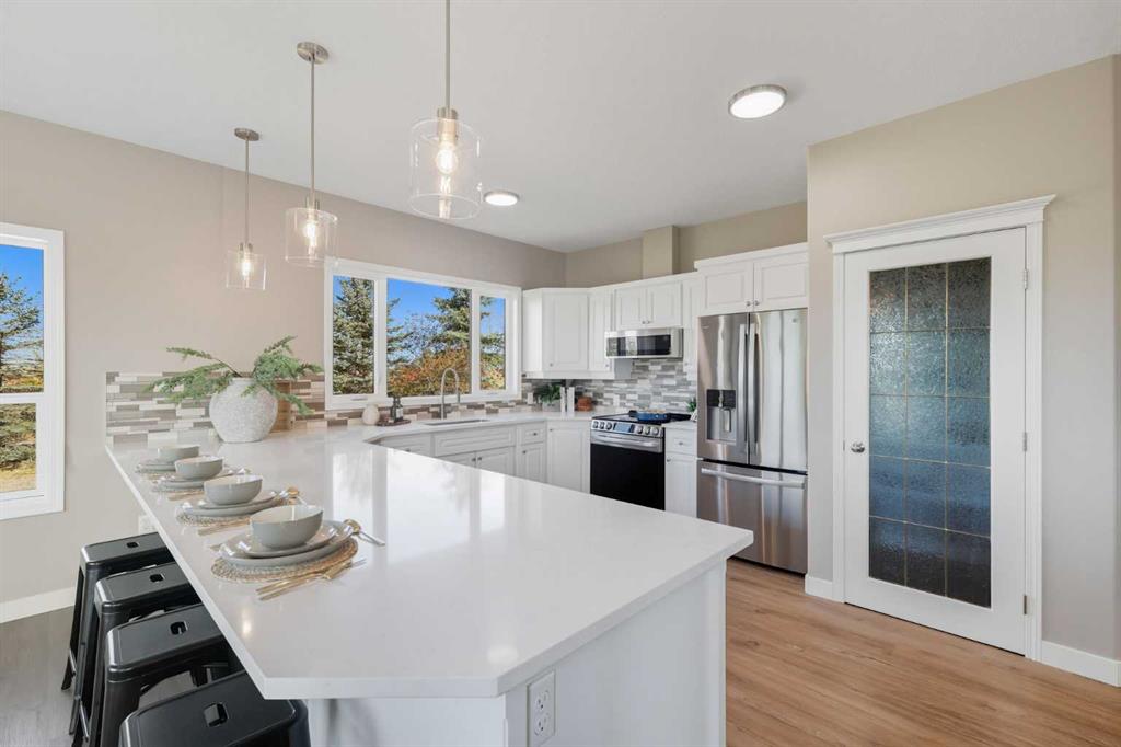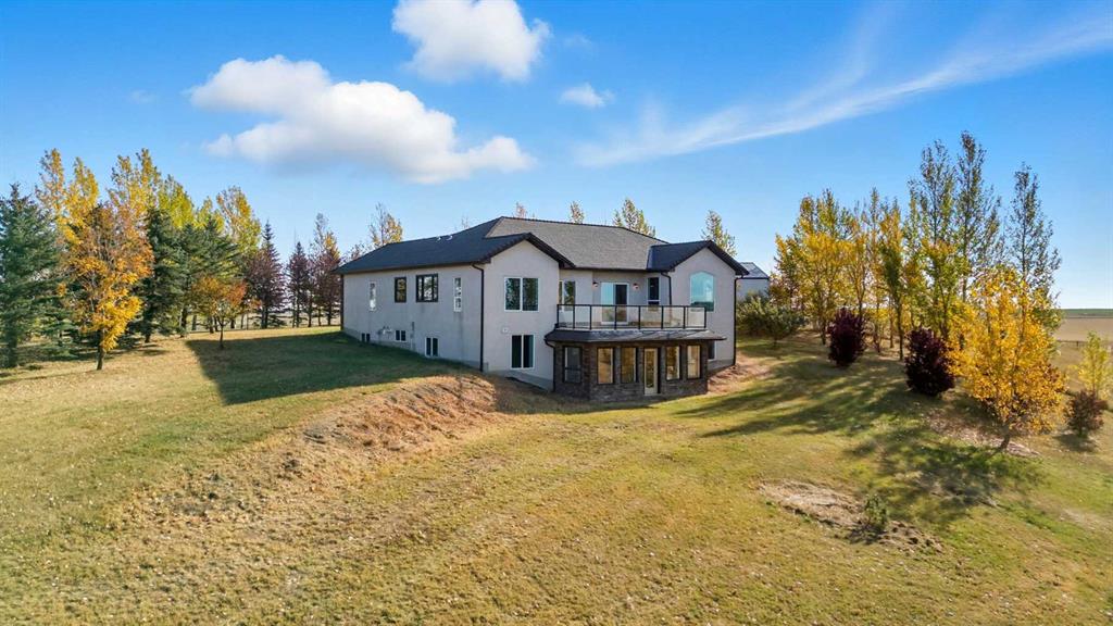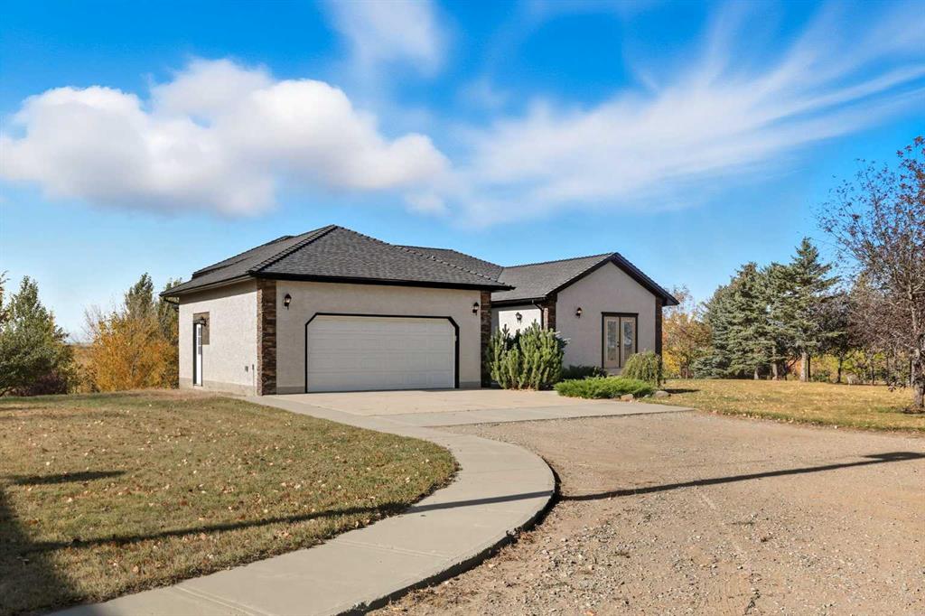 ~ OPEN HOUSE - SATURDAY. October 4, Noon to 4 p.m. ~ Welcome to this custom-built, 3500 sq ft developed area, walk-out bungalow perched on a scenic hilltop in Wheatland County, just 10 km north of Strathmore and only 25 minutes from Calgary International Airport. Set on 3 private, beautifully treed acres surrounded by agricultural fields and boasting unobstructed west-facing views of the Rocky Mountains, this property combines luxury living with peace and privacy. A tree-lined driveway lit with stately f...