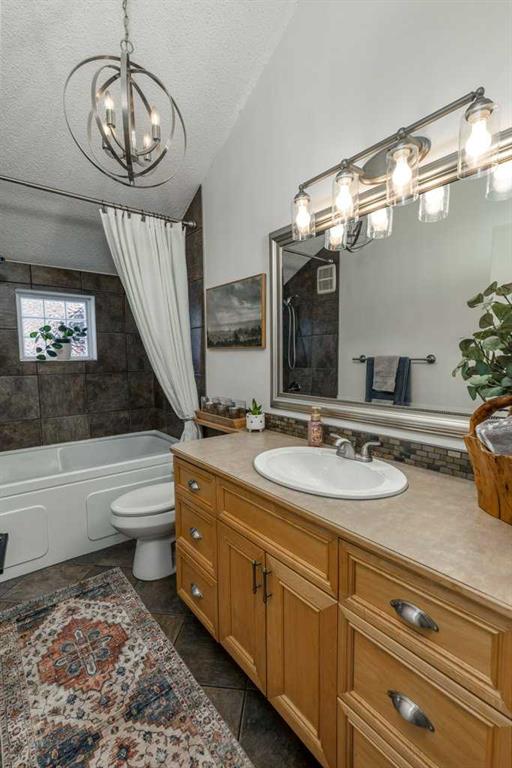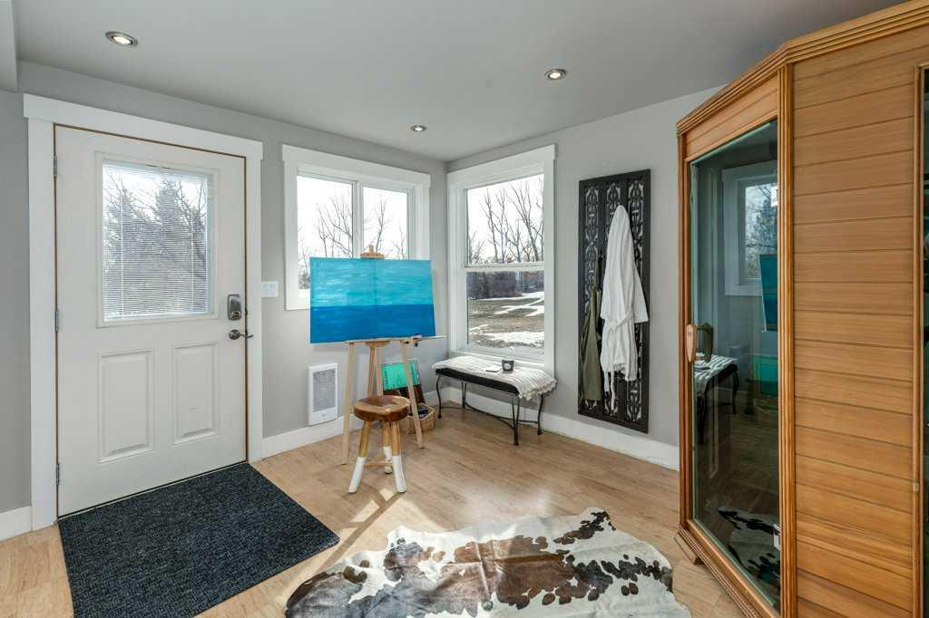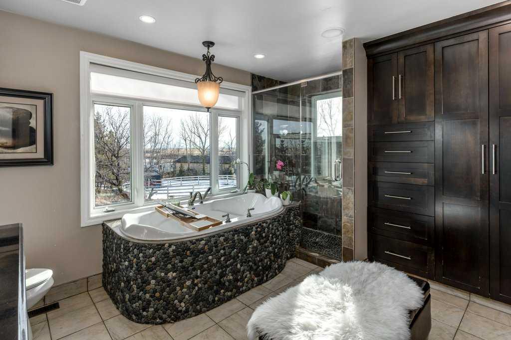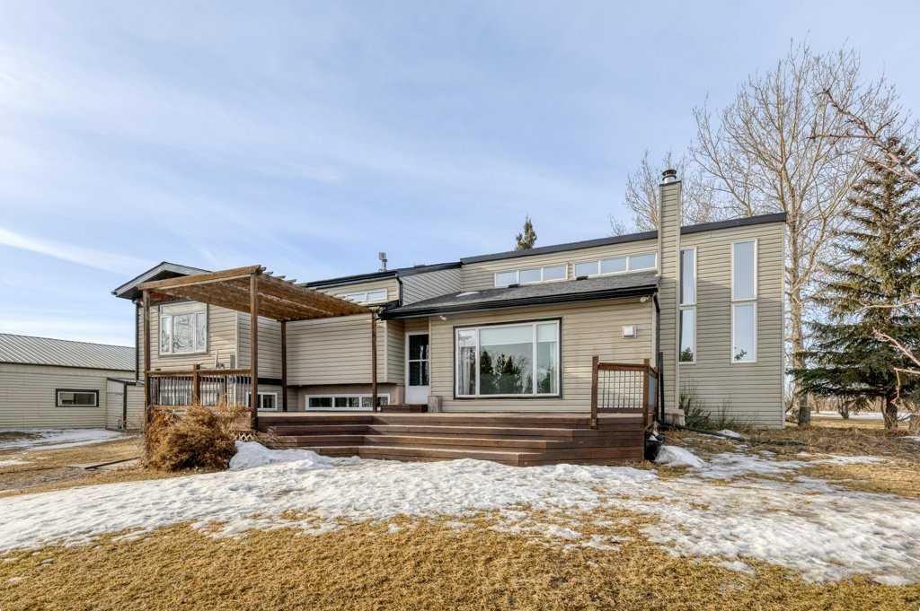 Experience the best of acreage living just minutes from Calgary city limits on this picturesque 4.28-acre property featuring a beautifully updated home full of character. The unique split-level design offers three bedrooms on the main level, including a spacious primary suite complete with a luxurious ensuite showcasing heated floors, a soaker tub, double sinks, and abundant built-in storage. Vaulted ceilings and hardwood flooring enhance the main living areas, while the sunken family room creates a warm an...