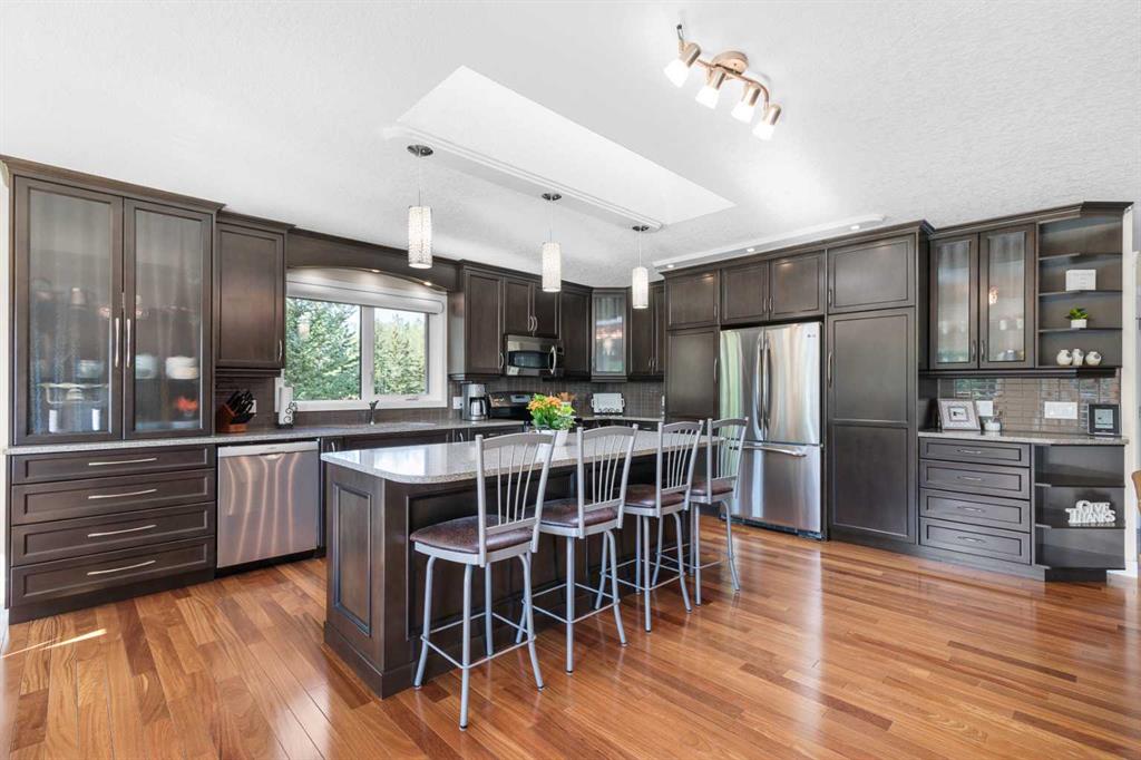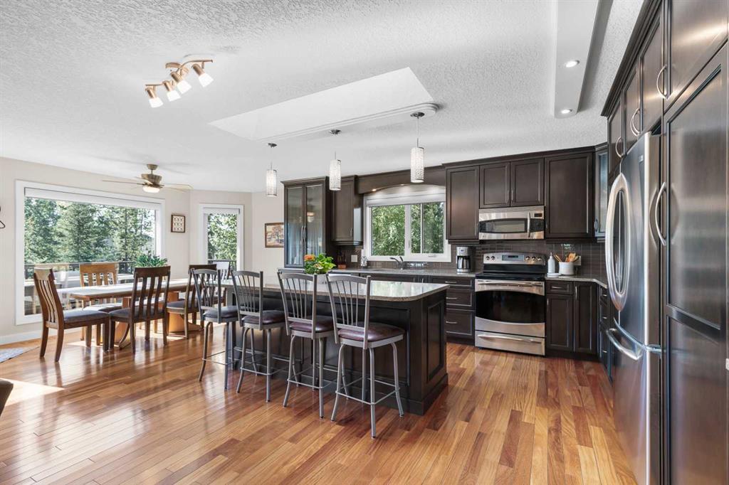 JUST LISTED! Set among rolling hills just southeast of Airdrie, this exceptional 5 bed, 4 bath contemporary bungalow rests on a meticulously landscaped acreage designed for privacy and tranquility. Over 400 mature trees, thoughtfully planted more than two decades ago, now surround the home in a natural, park-like sanctuary. Renovated with intention and quality, the residence blends modern design with timeless appeal. Notable updates include: triple-pane windows, Brazilian teak hardwood flooring a chef-inspi...
