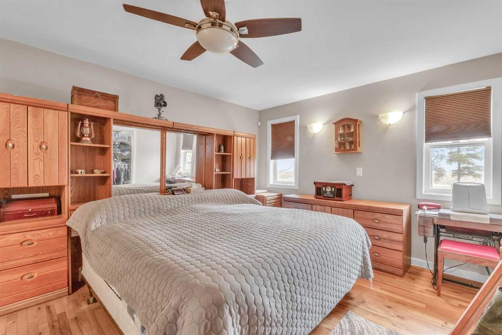 Quiet Country Living on a 10 Acre Property! Horse Enthusiasts, Hobby Farmers, Multi-Generational Families pay close attention to this acreage. 1331sqft Country Bungalow, 40'x22' Illegal Suite Outbuilding, 2 Double Detached Garages, 1 Single Garage & 3 Sheds. The Bungalow has a vaulted ceiling over the open flowing kitchen-living-dining room & hardwood floors underfoot. Lots of counter/cupboard space & breakfast bar seating in the kitchen with newer appliances. Sunroom accessed through living room adds addit...