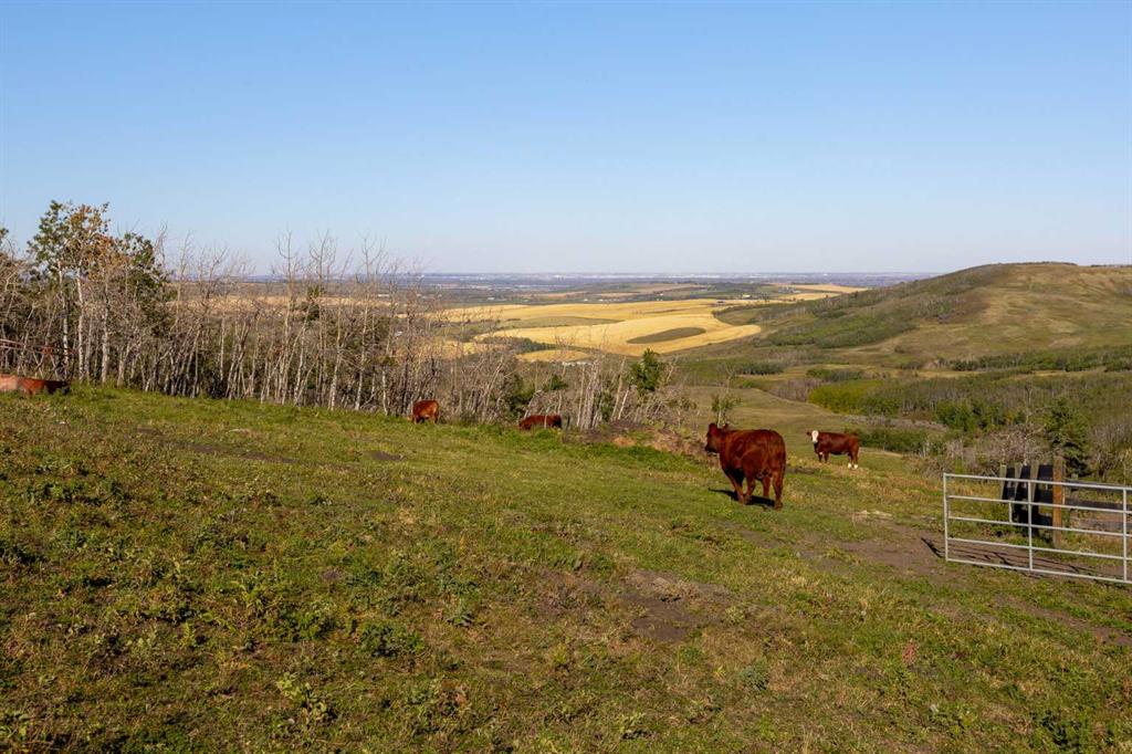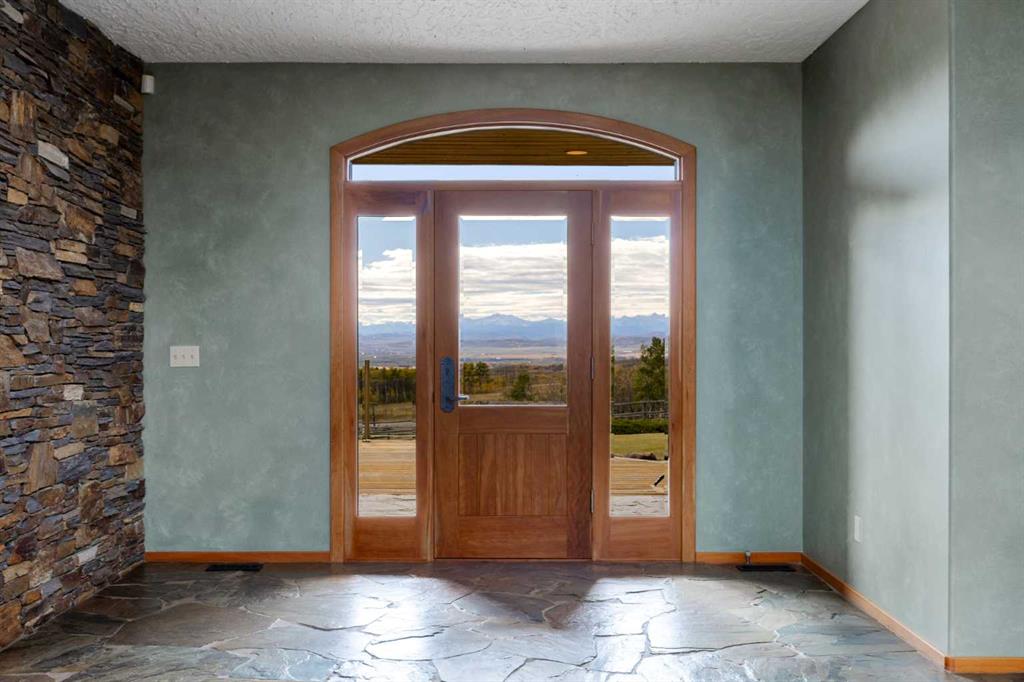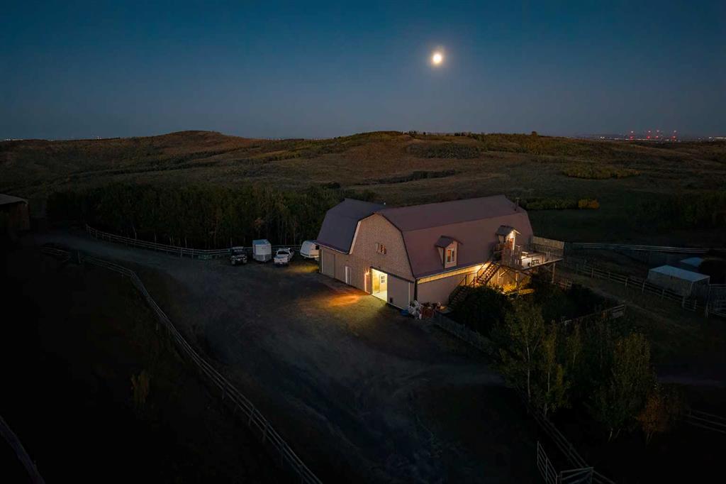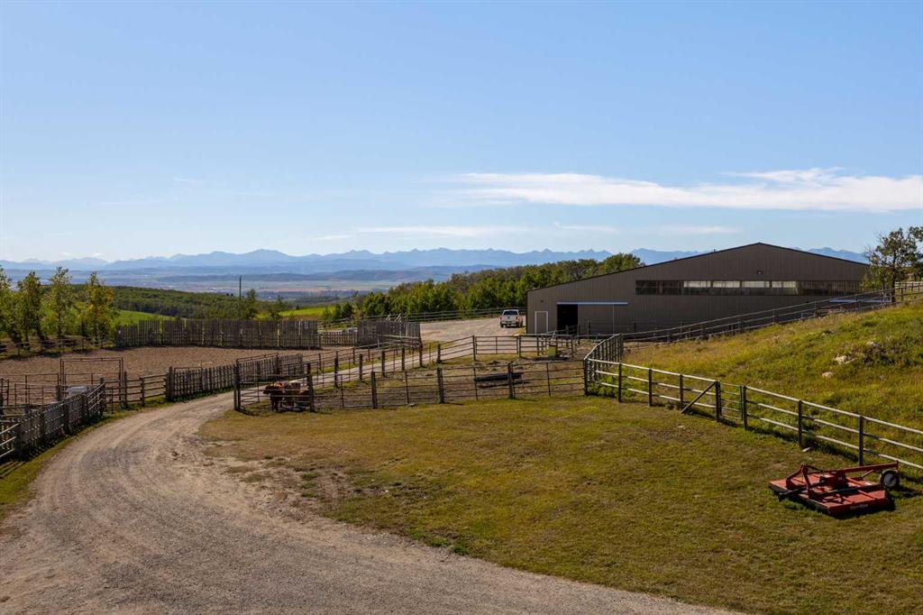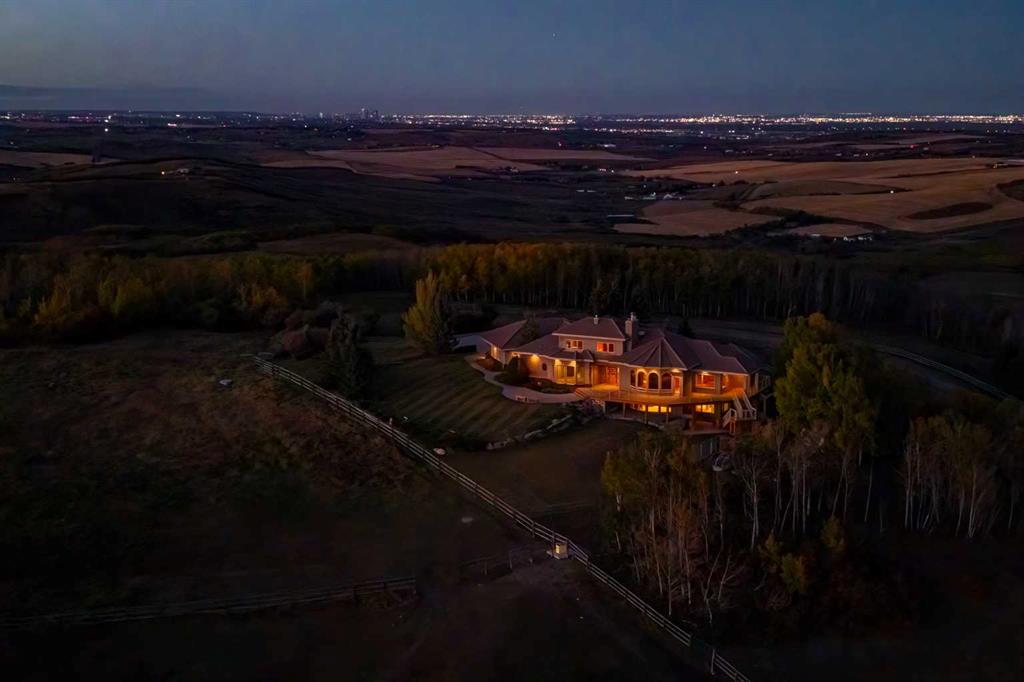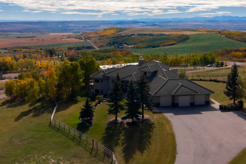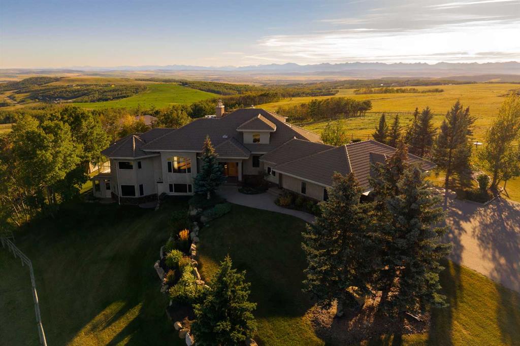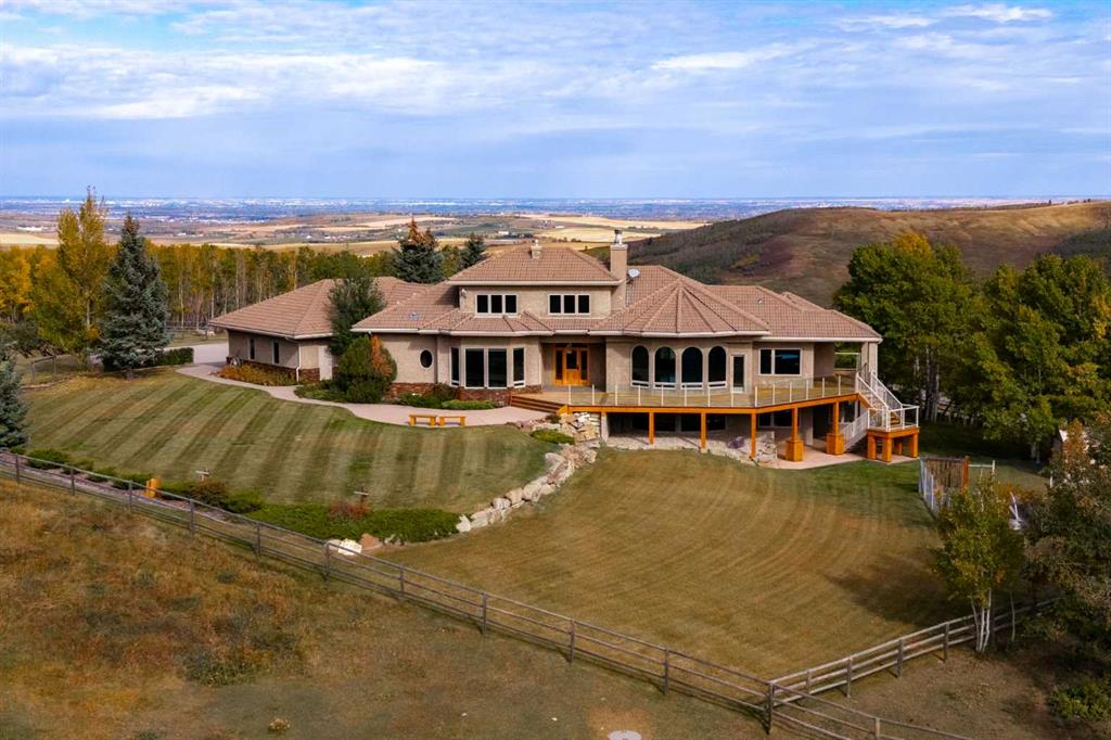 Welcome to an extraordinary 160-acre country estate where luxury, privacy, and equestrian excellence unite within a protected wildlife corridor. Panoramic views of the Rocky Mountains and Calgary skyline provide a breathtaking backdrop to this serene yet conveniently located property. A gated, rail-lined drive leads to a striking 3,483 sq.ft. custom walkout bungalow with over 6,200 sq.ft. of developed living space. Designed with light, proportion, and warmth in mind, this five-bedroom, five-bath residence f...