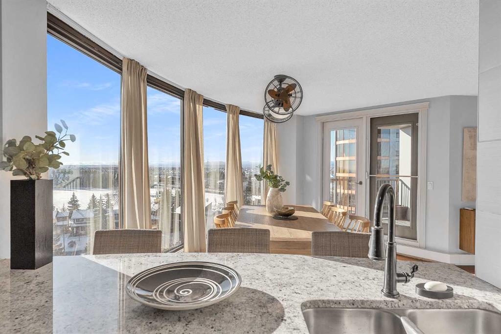 SPACIOUS 9TH FLOOR CONDO WITH 180° DEGREE VIEWS OF DOWNTOWN, CITY, AND MOUNTAINS– 1352 SQFT | 2 BEDROOMS | 2 BATHROOMS | 2 PARKING STALLS | Welcome to executive living at the iconic Odyssey Towers. This unique concrete building is designed with large floorplans that provide privacy, style and function. With wall to wall windows and open plan living space, this home is filled with natural light and provides views from every room. On the interior you will find a spacious french country inspired kitchen eq...