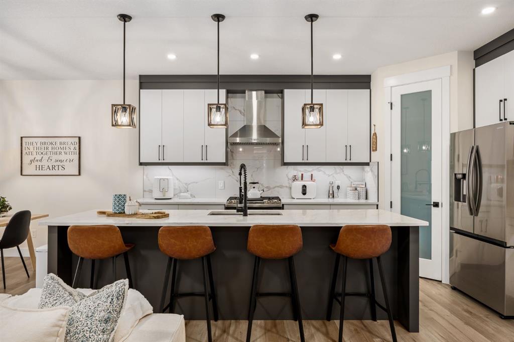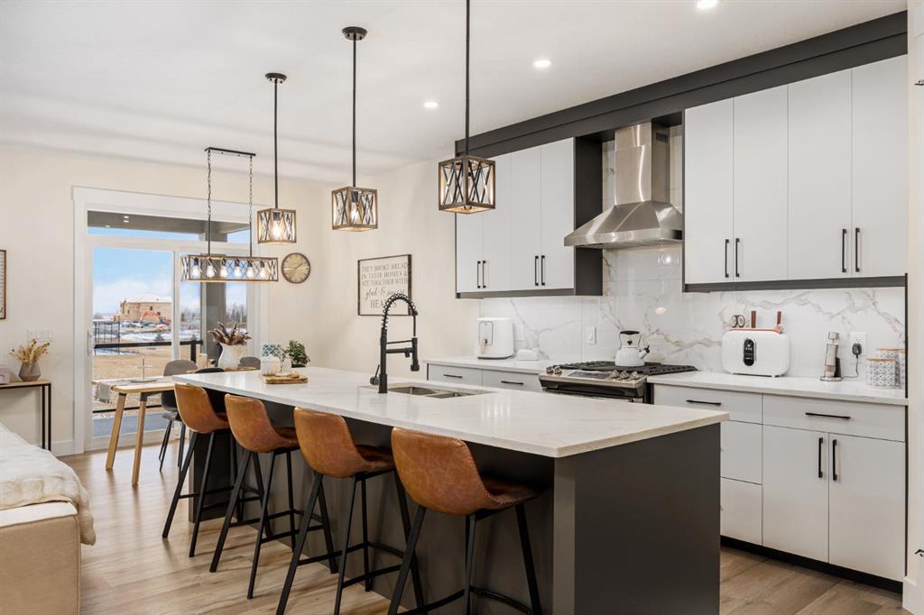 Discover refined living in this impeccably crafted 2024 custom-built two-storey walkout by Shayman Homes, located in the sought-after lake community of Lakewood in Strathmore. Backing onto a lush green space and walking path with no neighbours behind, this east-facing home offers nearly 3,000 sq.ft. of beautifully designed living space with luxury finishes throughout. The striking exterior with stone accents and extended driveway welcomes you into a bright foyer filled with natural light from oversized wind...