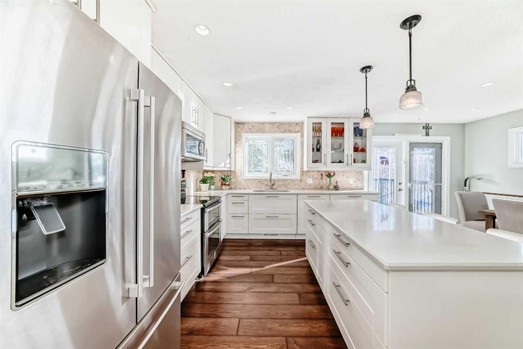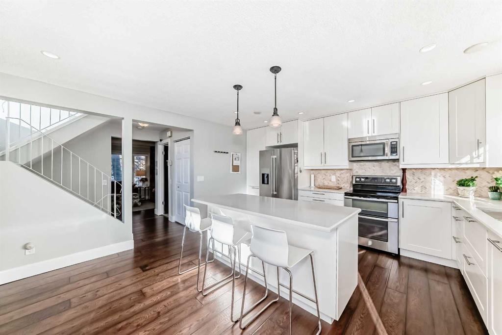 Beautiful walkout 2 storey half duplex with so many upgrades including a very bright kitchen with an array windows and an impressive display of modern floor to ceiling shaker style cabinets, Pantry with pull outs, more than 6 banks of drawers spread out between island and wall cabinets, uner mount lighting, large working island, recessed lighting, engineered Oak wood flooring throughout main floor, spacious dining area adjacent to kitchen with patio doors onto a very large new trex deck with metal railings...